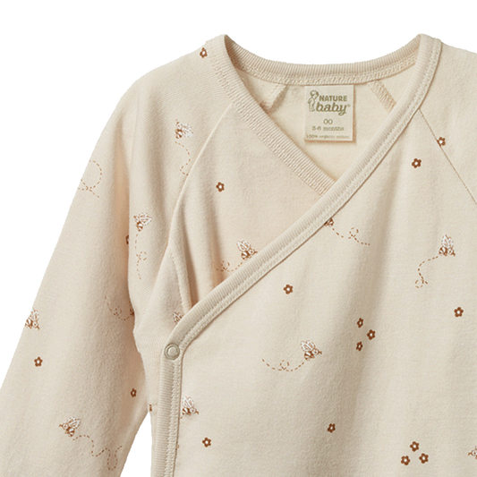 Nature Baby Long Sleeve Kimono Bodysuit - Bumble Bee Print