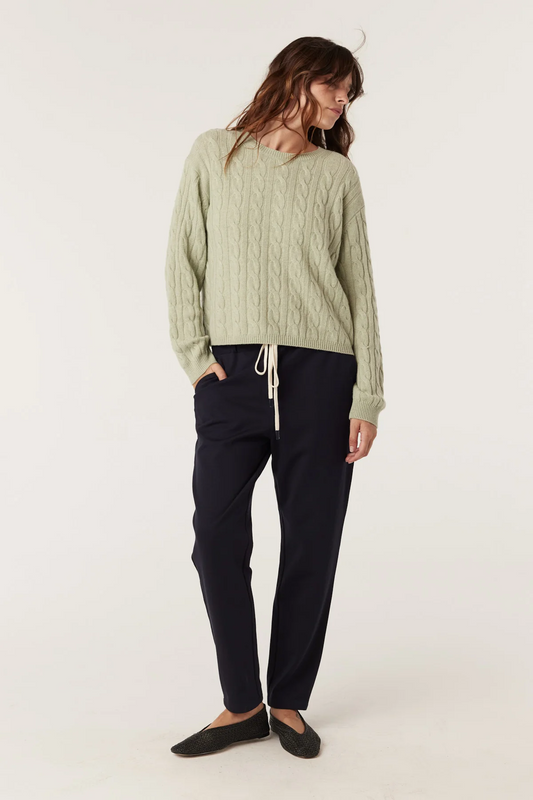 Cable Cashwool Cable Crew Jumper - Pistachio Green