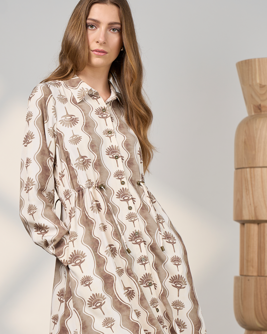 Madly Sweetly Waverly Shirt Dress - Taupe Multi
