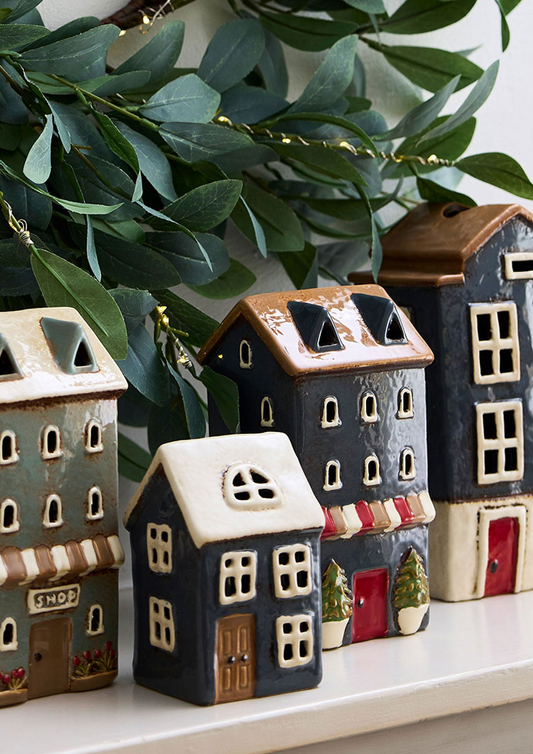 French Country Alsace Tea Light Cottage Navy With Wreath