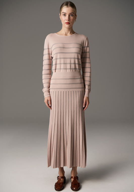 POL Gizelle Pleat Skirt Lurex - Blush/Silver