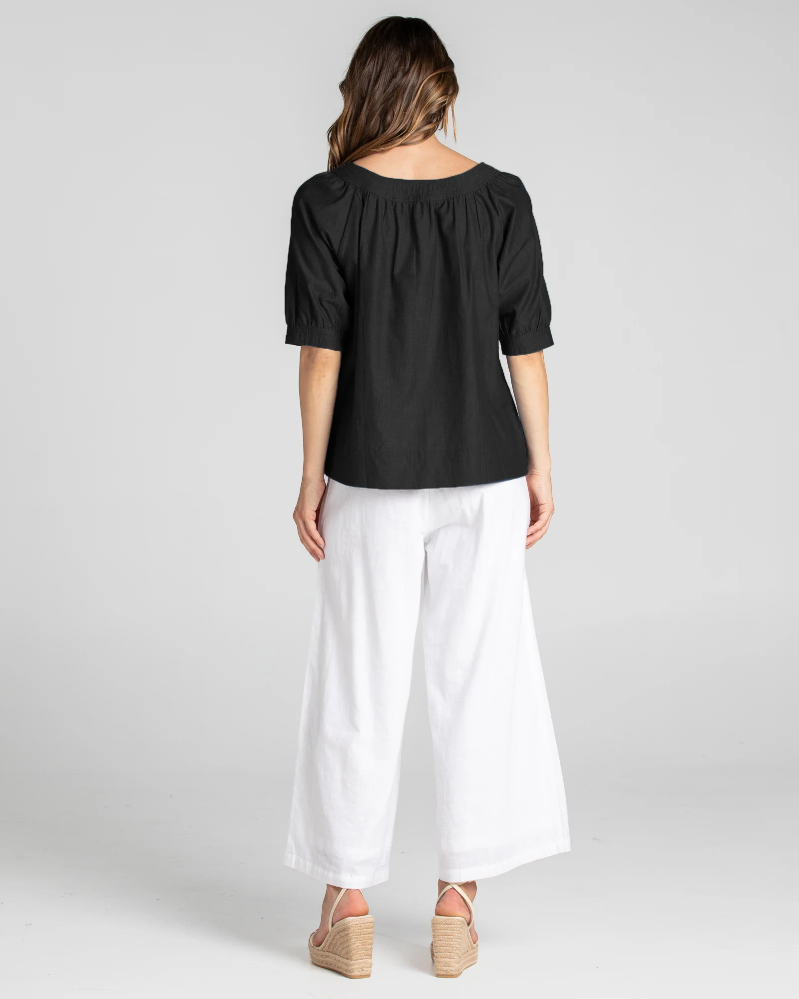 The Boom Shankar Ria Pant is a 100% cotton, ankle-length pant with a super comfortable stretch cotton waistband, drawstring tie, and flattering wide leg shape. These pants are fully lined and can be worn from season to season.