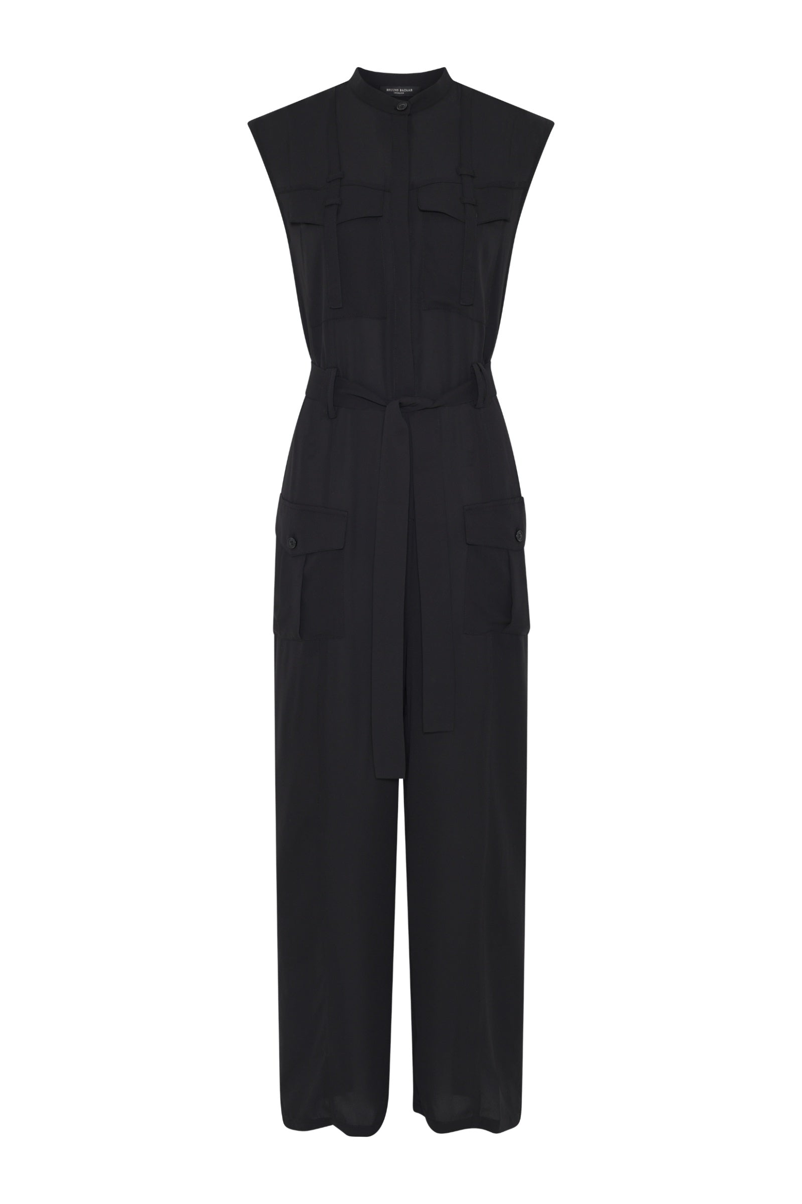 Elegant and functional jumpsuit in a loose-fit design with utility-inspired details. It features pockets, belt loops, and an adjustable belt that accentuates the waist for a flattering silhouette. - Loose-fit cut for comfort and style