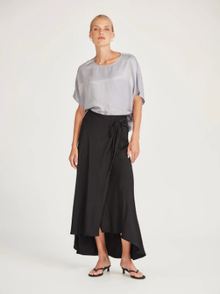 This fluid top is made in an eco-conscious satin, for an elegant aesthetic. The lustrous fabric is pared back in a sleek tee shape. In classic Black, Ivory, or metallic Silver with soft Lilac undertones.
