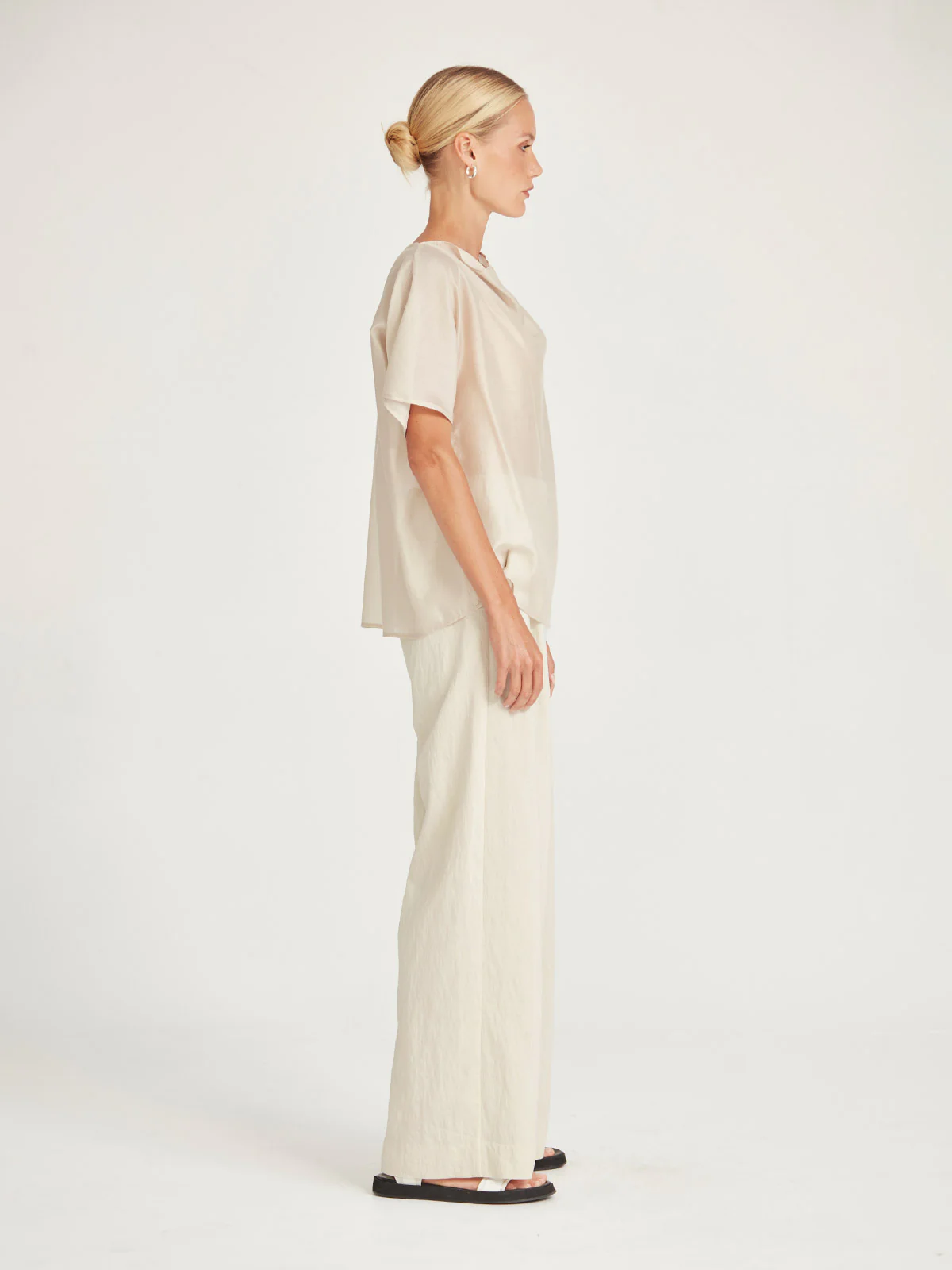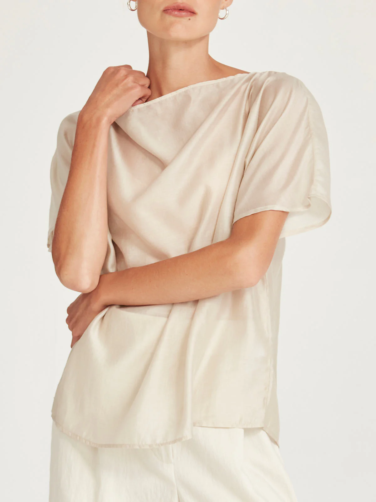 The Dana is an elevated tee crafted in Caroline Sills' signature Breeze Shirting. Its lightness allows for comfortable wear and beautiful drape. Available in three new SS25 colours, inspired by a desert colour palette.