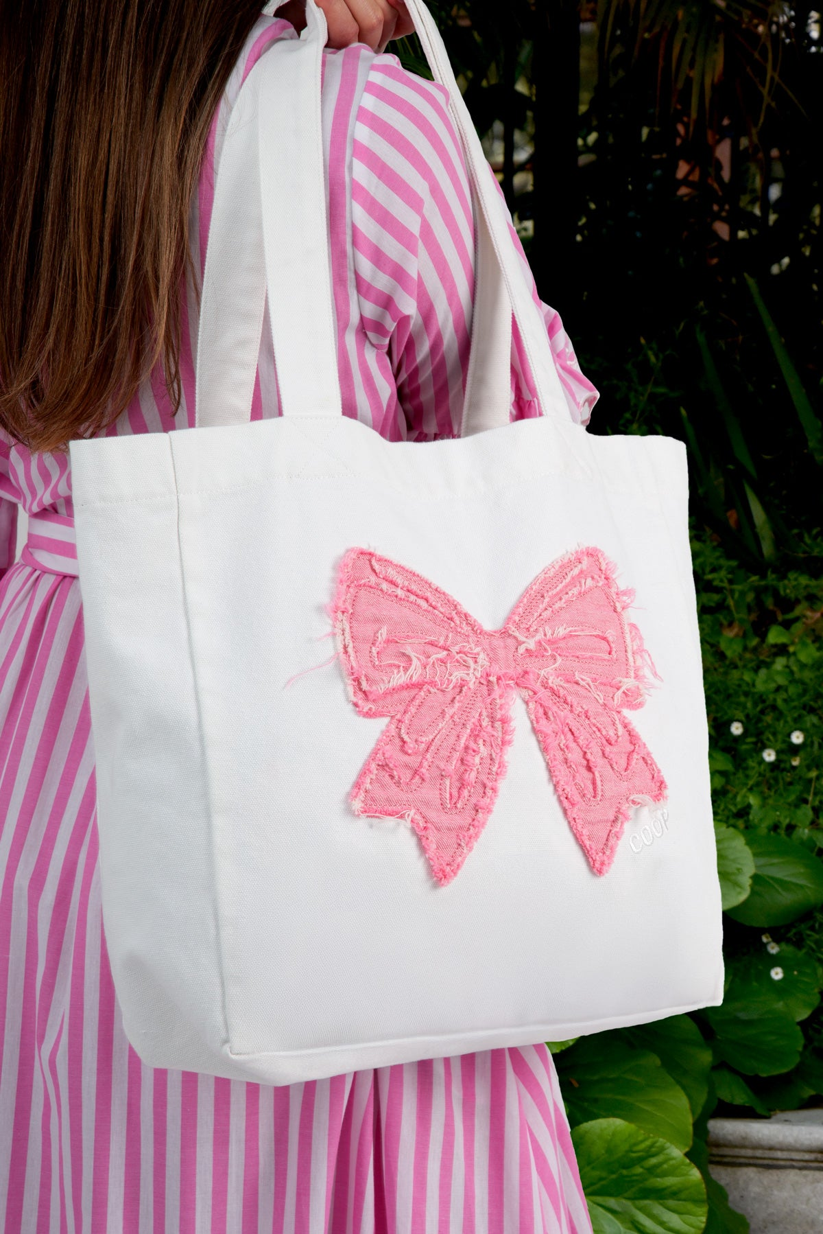 Complete your look with the ‘The Bold & The Beautiful’ bag this season, a perfect hold-all that doesn’t compromise on style. Featuring a distressed bow applique and crafted in a durable cotton drill, this bag is the ultimate choice for gals on the go.