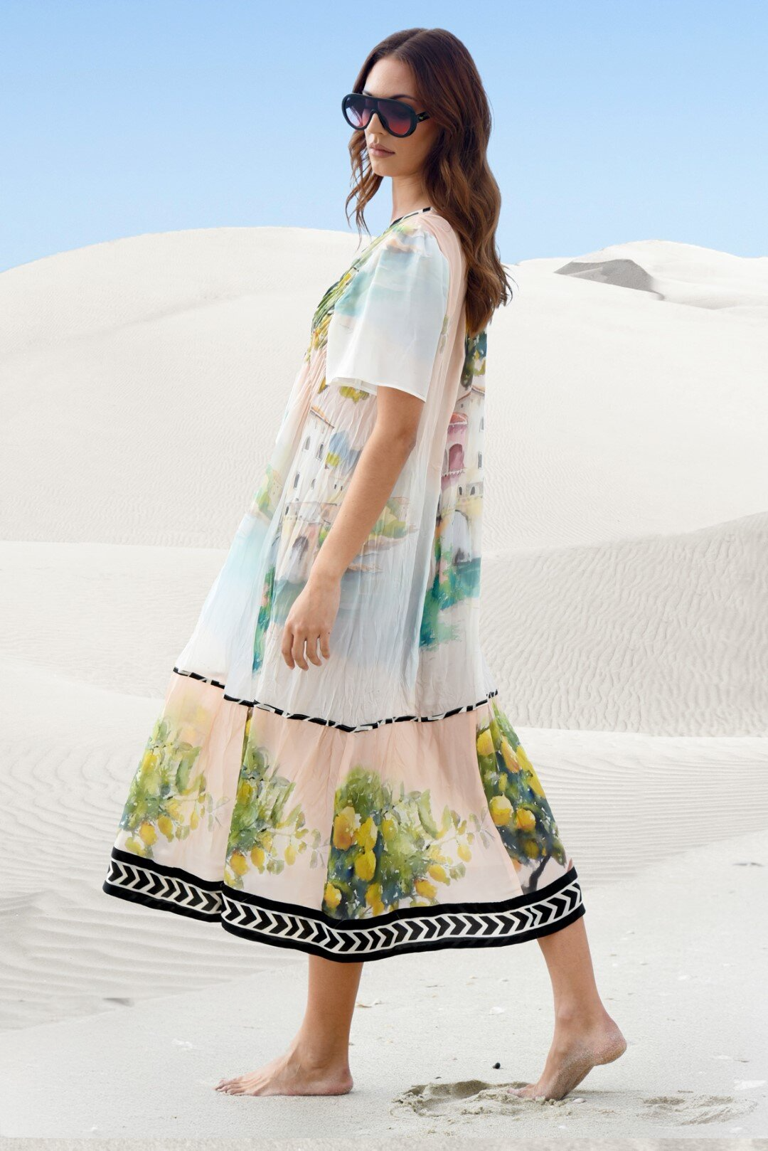 Blurring the lines between office and play, the ‘Dress to Impress’ dress spotlights delicate shirring for a figure flattering fit. Thoughtfully curated in the ‘Postcards from Italy’ fabrication, that moves artfully with every step, this dress features a center back zip, side pockets, a V-neckline and gathered shoulder flutter sleeves.