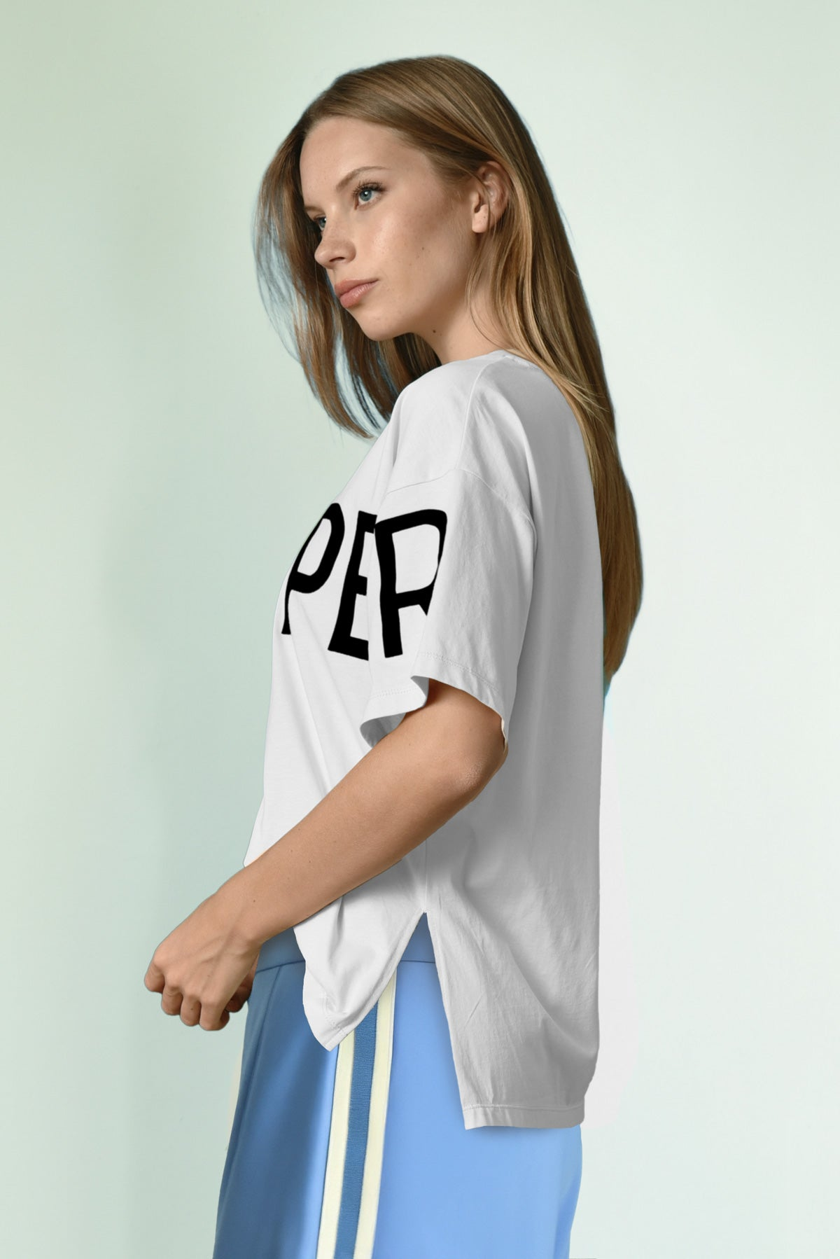 Adorned with a tactile, flocked Cooper logo, the ‘Left Hanging’ t-shirt makes a statement in a casual way. Crafted in the ‘Staying Neutral’ cotton t-shirting, this t-shirt delivers a generous fit equipped with a ribbed neckline, step hem and side splits. Perfect for pairing over jeans, shorts or skirts for a sporty, glam look.