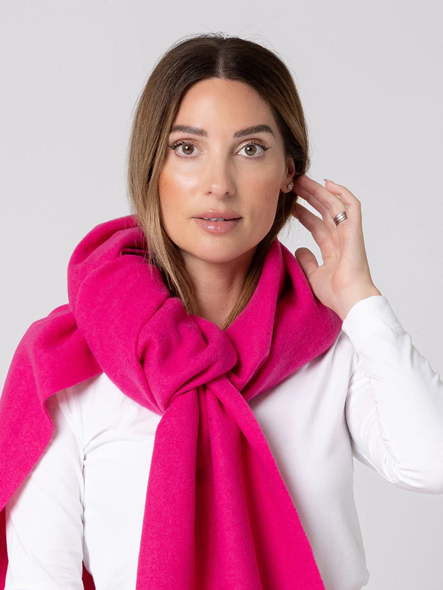 A stunning wool scarf in a vibrant pink. Add a gorgeous, warm pop of colour to your winter wardrobe.