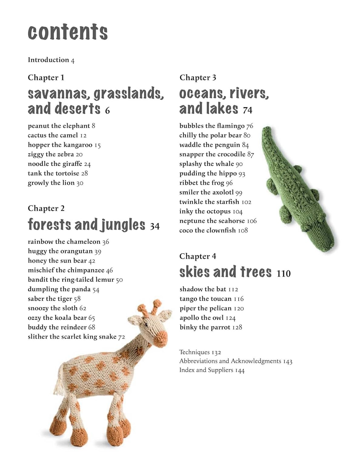 Dive into the water and make creatures from an octopus and a flamingo to a penguin and a whale. Take to the skies and knit beautiful birds such as an owl, a pelican, and a toucan.