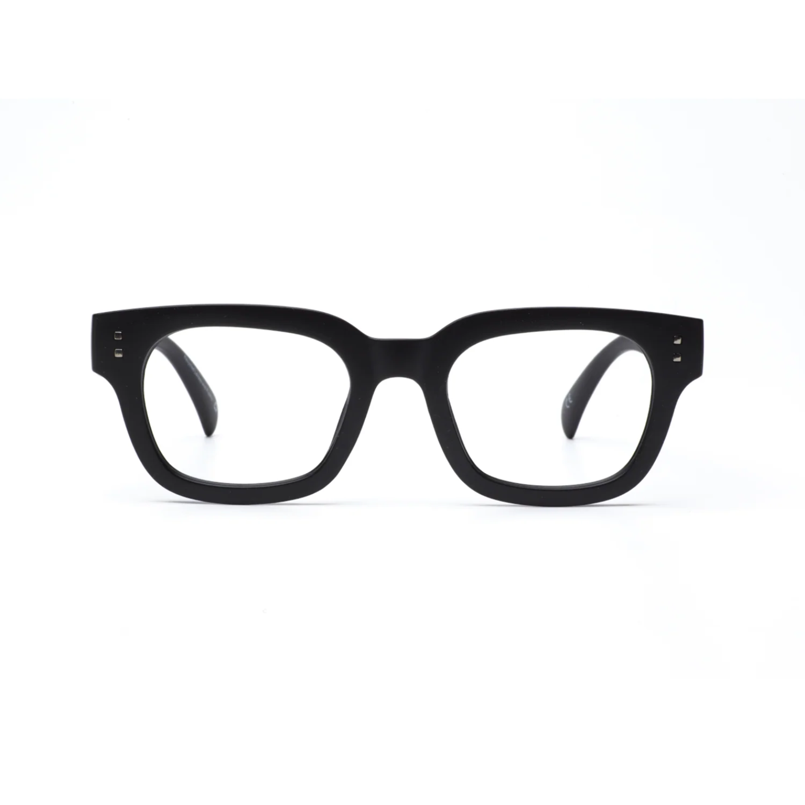2PM – Our thick rectangular frame embodies a bold, distinctive style. A unisex design with unique detailing, crafted for comfort and quality. Made using recycled lenses and plastics, this frame also features a smooth matte finish and spring-loaded hinges for a secure fit.