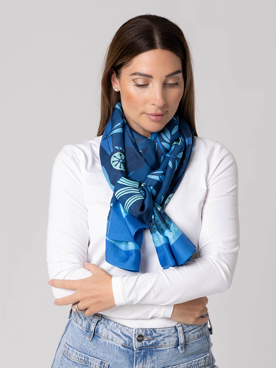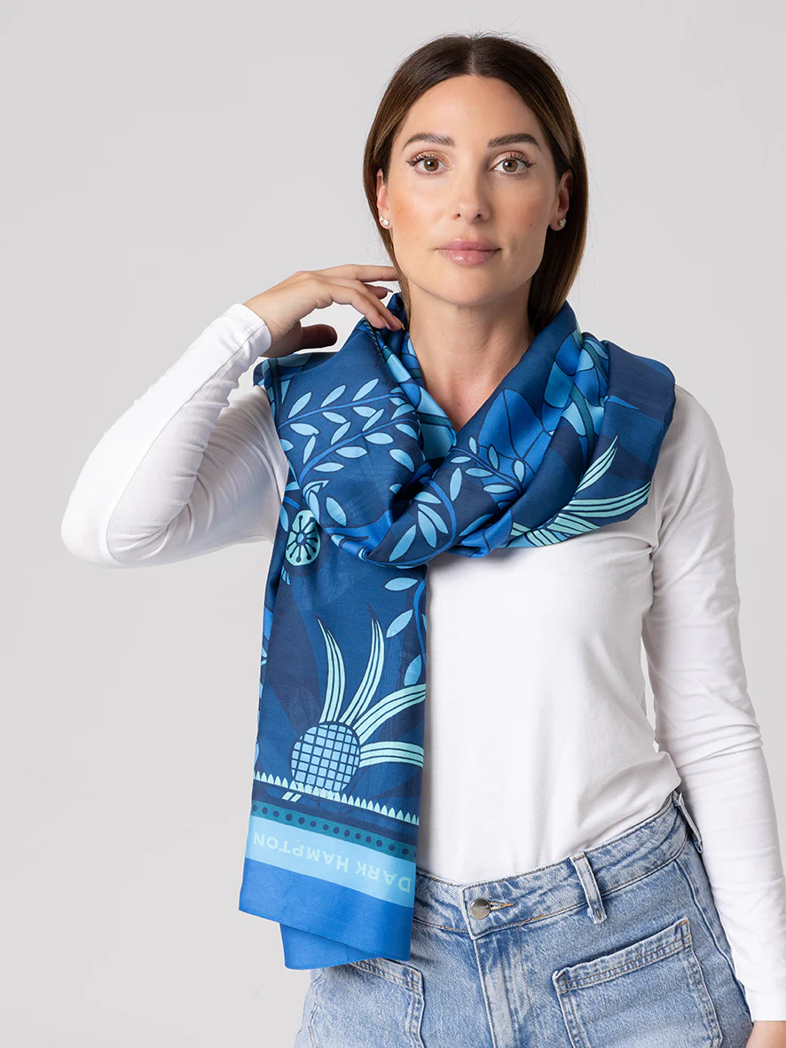 Experience the beauty of New Zealand design with this versatile, extra large scarf, a stunning collaboration between Kyla K and Dark Hampton. This can be worn as a scarf, wrap or sarong.