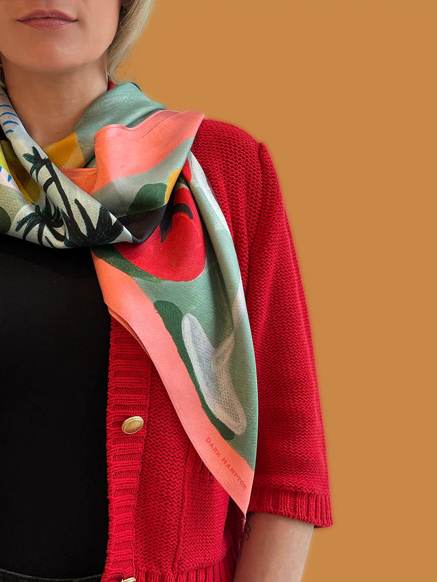 This beautiful, New Zealand designed scarf features Bonnie’s signature painterly style, a joyful swirl of colour and texture inspired by the simple pleasures of a springtime table.