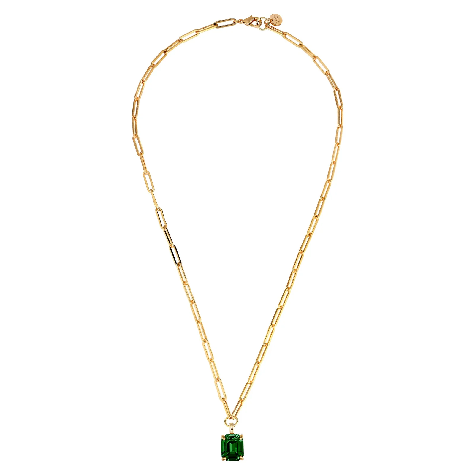 Luxurious Finish: The gold-tone finish paired with an emerald green crystal adds radiance, making this necklace versatile for both casual and formal occasions.