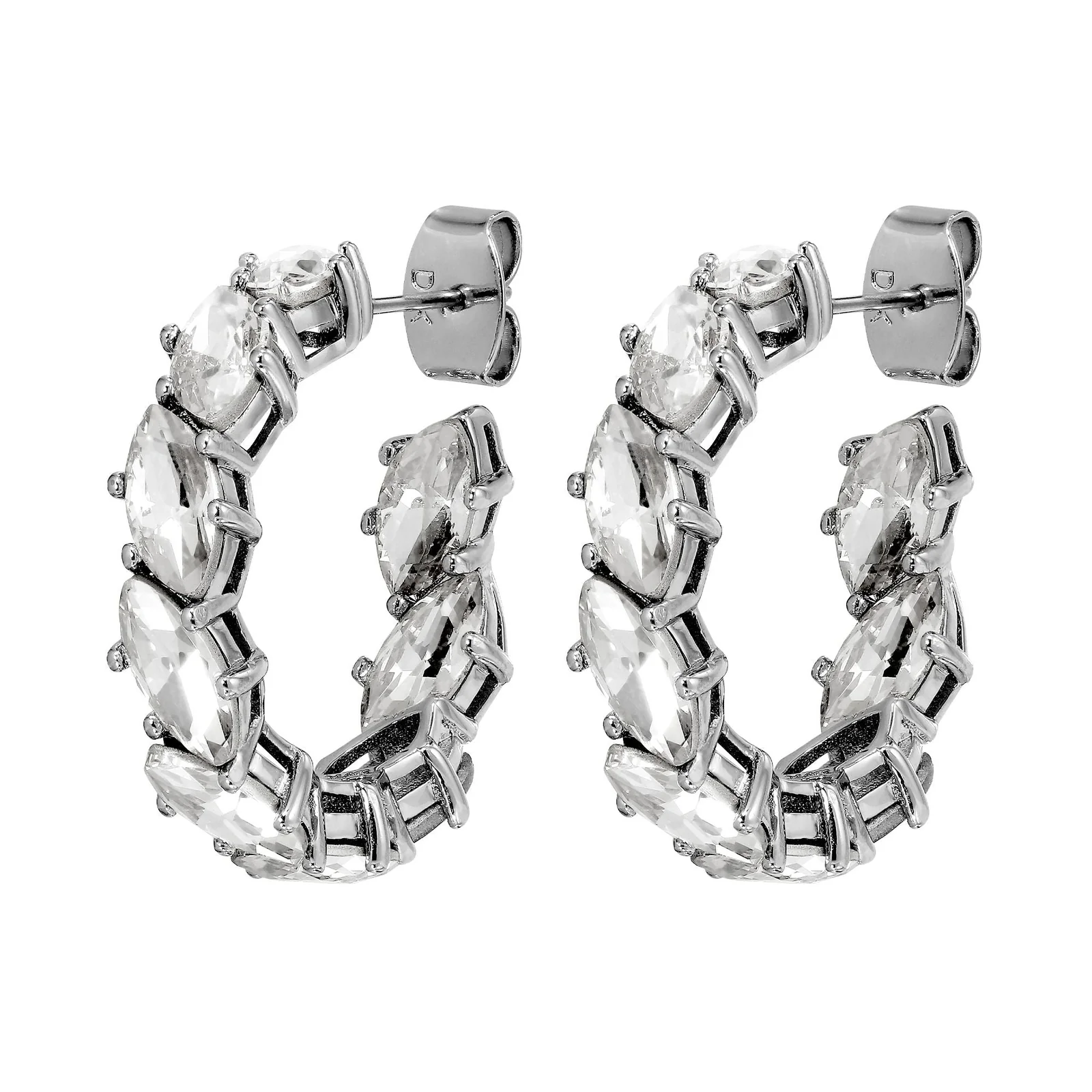 Tamarind makes an unforgettable statement with its striking row of navette-shaped clear crystals set in a 22mm silver-tone hoop. These eye-catching earrings masterfully balance urban edge with refined elegance – perfect for making an impact wherever you go.