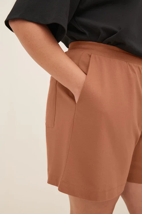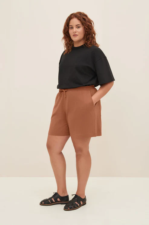 Ideal for casual wear, the Drawcord Shorts effortlessly combine comfort with versatility. These wide-leg shorts offer a relaxed fit that ends just above the knee. The mid-rise elastic waist includes a functional drawcord, while the back features two patch pockets and side seam pockets add to their practicality. Made from midweight organic cotton jersey.