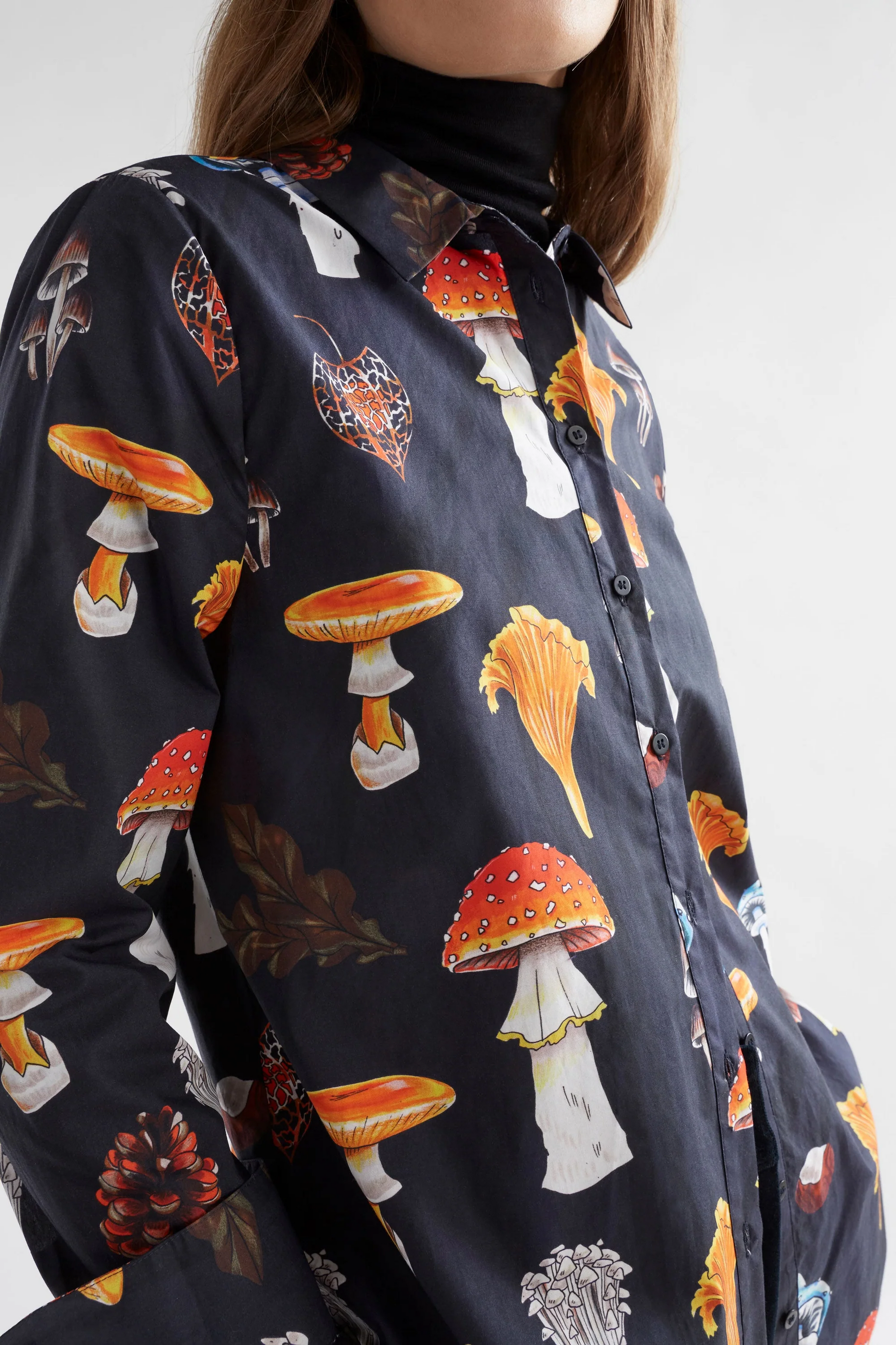 Crafted from buttery Organic Cotton, the Allem Shirt spotlights our vibrant Mushroom Print across a flowing, easy-to-wear silhouette. Traditional shirting details, from the crisp front placket to the buttoned cuffs, ground the playful print, adding a sense of structure to the relaxed drape. A curved hemline and subtle back pleat complete a piece made for layering, styling, and standing out.