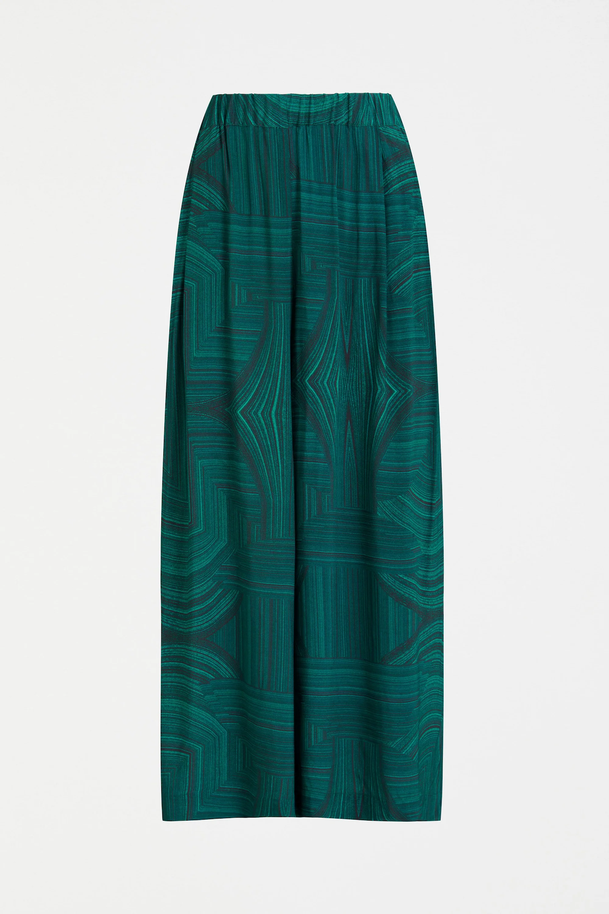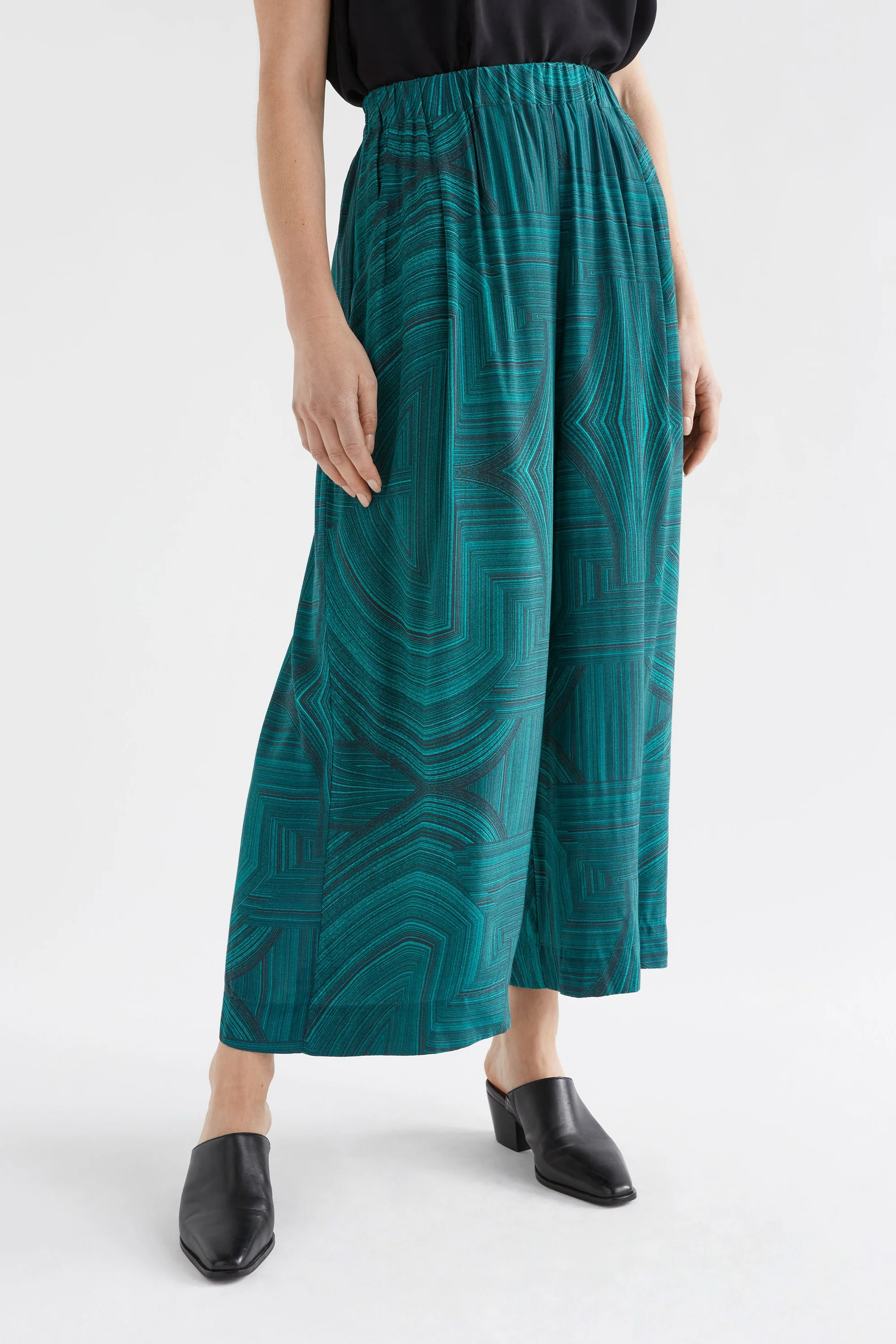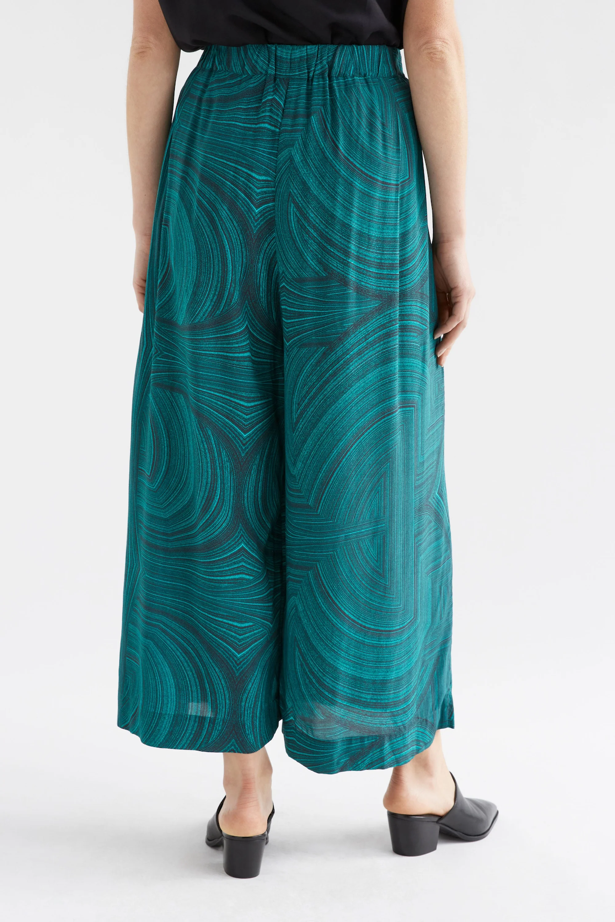 The Krava Pant is a pull-on pant printed in our limited seasonal Malachite Print - depicting the many green hues of the malachite stone. Featuring an easy-wearing elasticated waistband, the Krava Pant unites the formal flow of silky viscose, with the all-day ease of a stretch waist. Create a coordinated look by pairing with the Krava Sheer Top, or pair casually with the relaxed Eta Top. The Malachite Print is a yardage print. The placement of the print is unique to each garment.