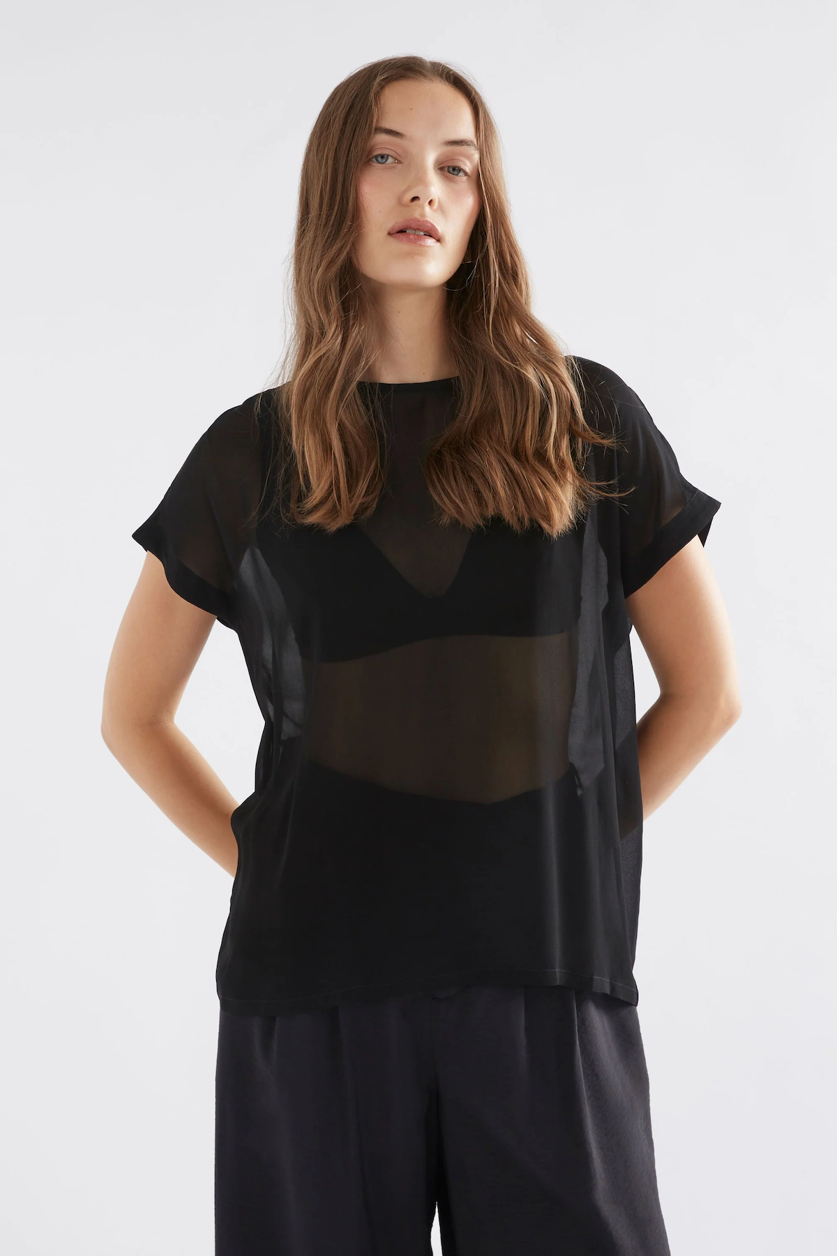 The Sheer Webb Top is a shirred back top featuring a batwing sleeve. The top is crafted from breathable viscose. The shirred detailing is the focal point of the piece, adding a touch of movement and transforming the back hem into a delicate fluted effect. The Sheer Webb Top finds the ever-elusive balance between work and weekend style.