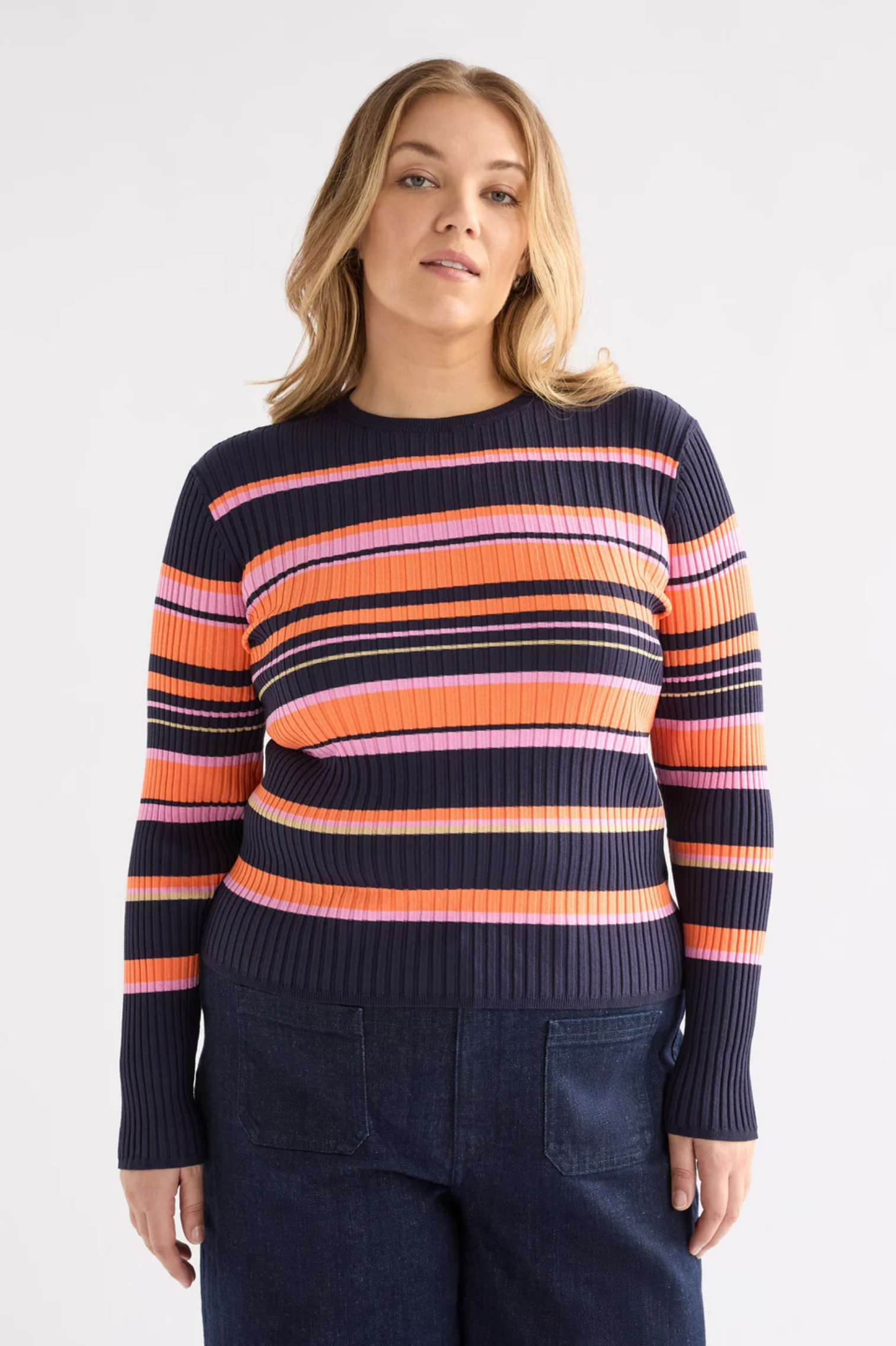 Add some playful colour to your outfits with the Slinki Sweater. This stretchy rib knit, sweater is crafted from LENZING™ ECOVERO™ Viscose, a more sustainable choice that is both breathable and cool. This long sleeve jumper has a fitted silhouette that offers both comfort and sophistication in one piece and will take you through the seasons with its styling versatility. Pair tucked into our Huulu Pant or Ellem Pant, alternatively style with the matching Slinki Skirt for a fun, coordinated look