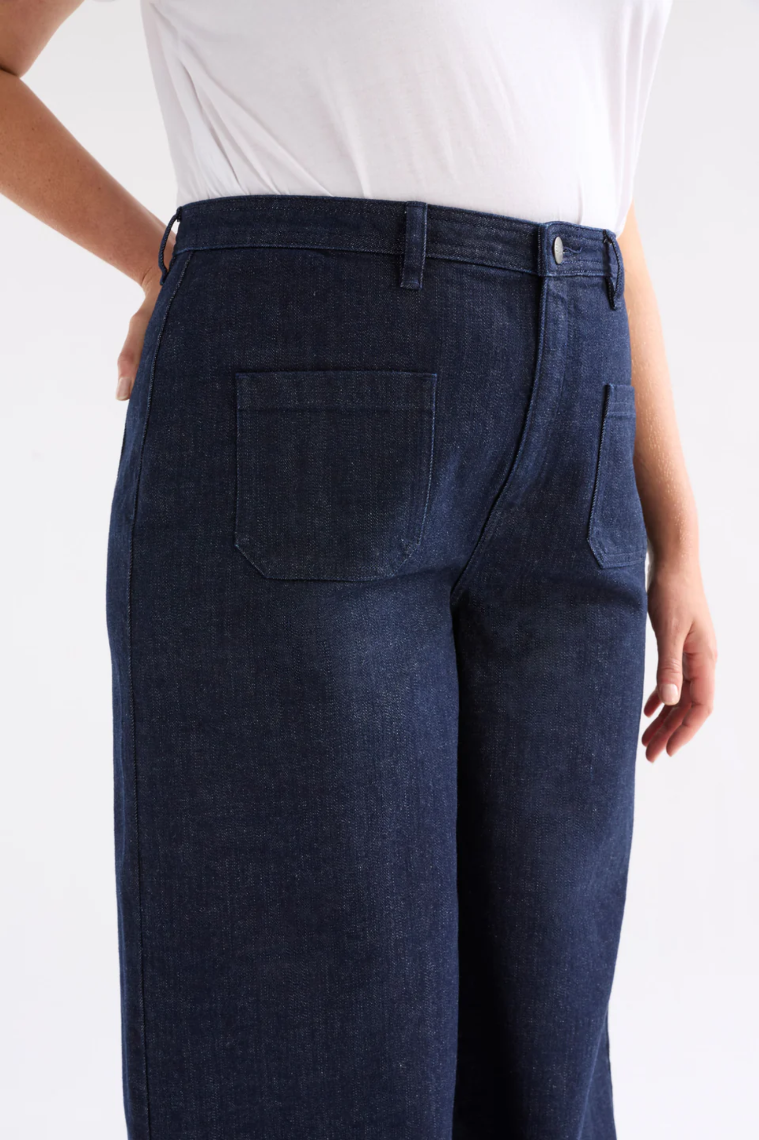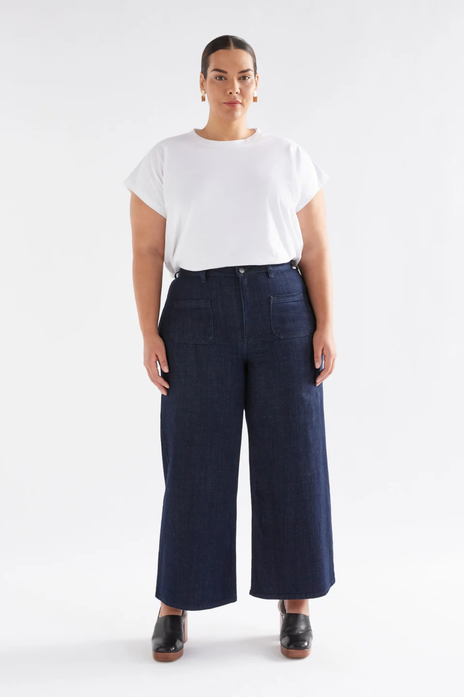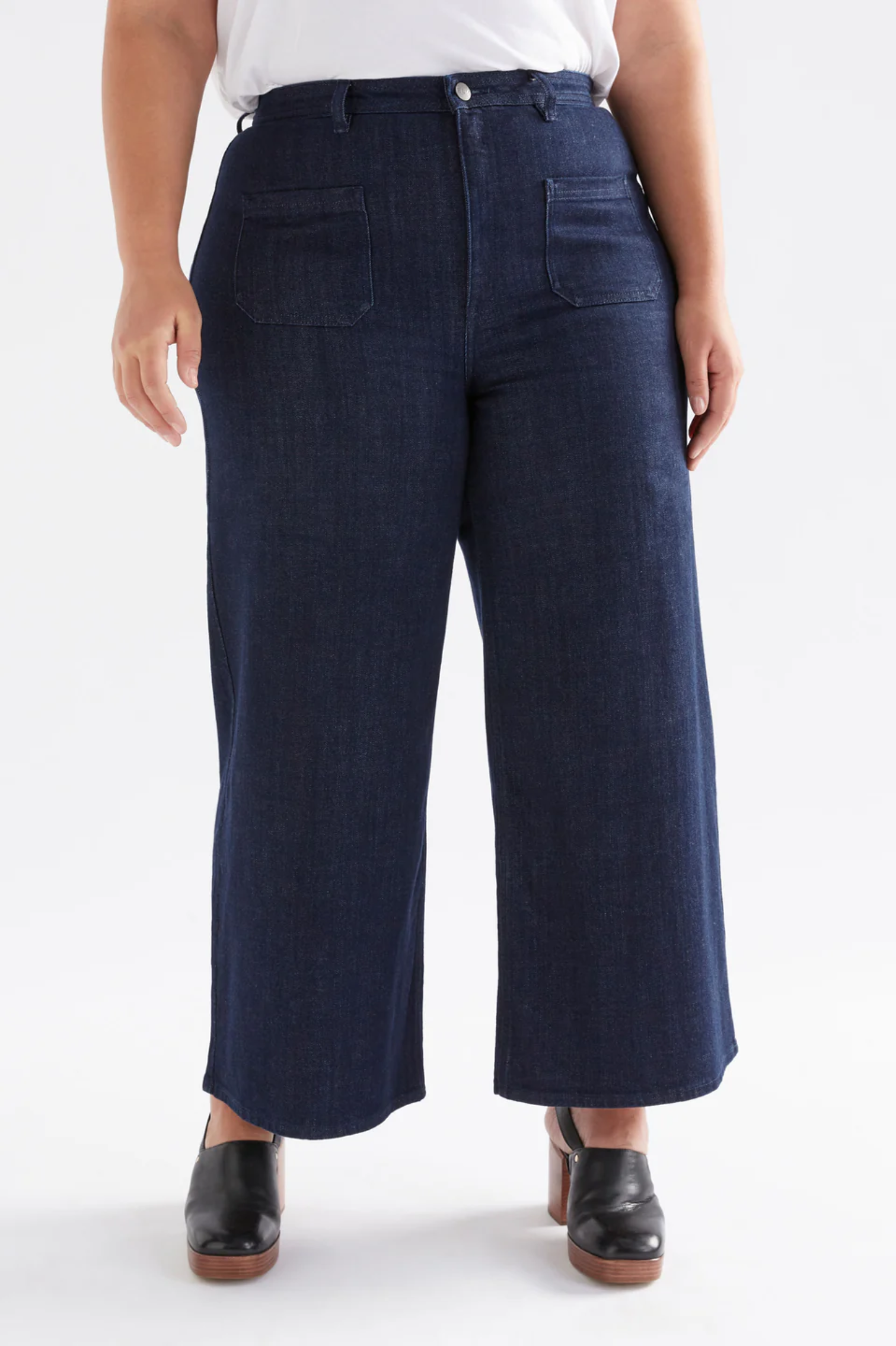 The Sondern Jean is a new take on our favourite Tovi Jean cut. Boasting a wide leg and high-rise waist with two feature patch front pockets, adding a vintage appeal. This jean offers versatility with a modern edge. Crafted with a slight stretch for flexibility, it maintains impeccable shape and structure throughout wear.