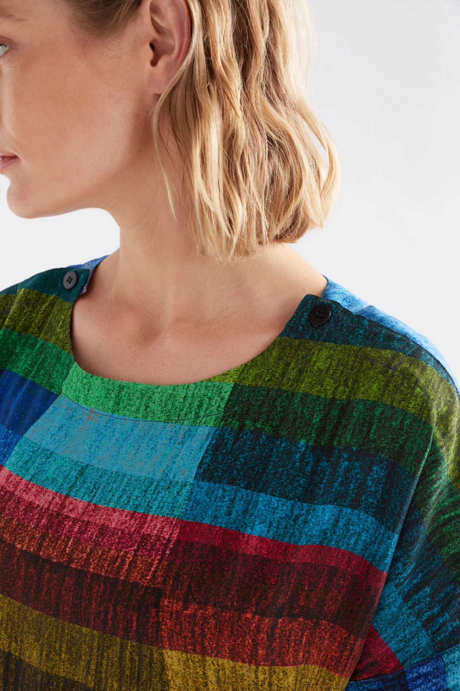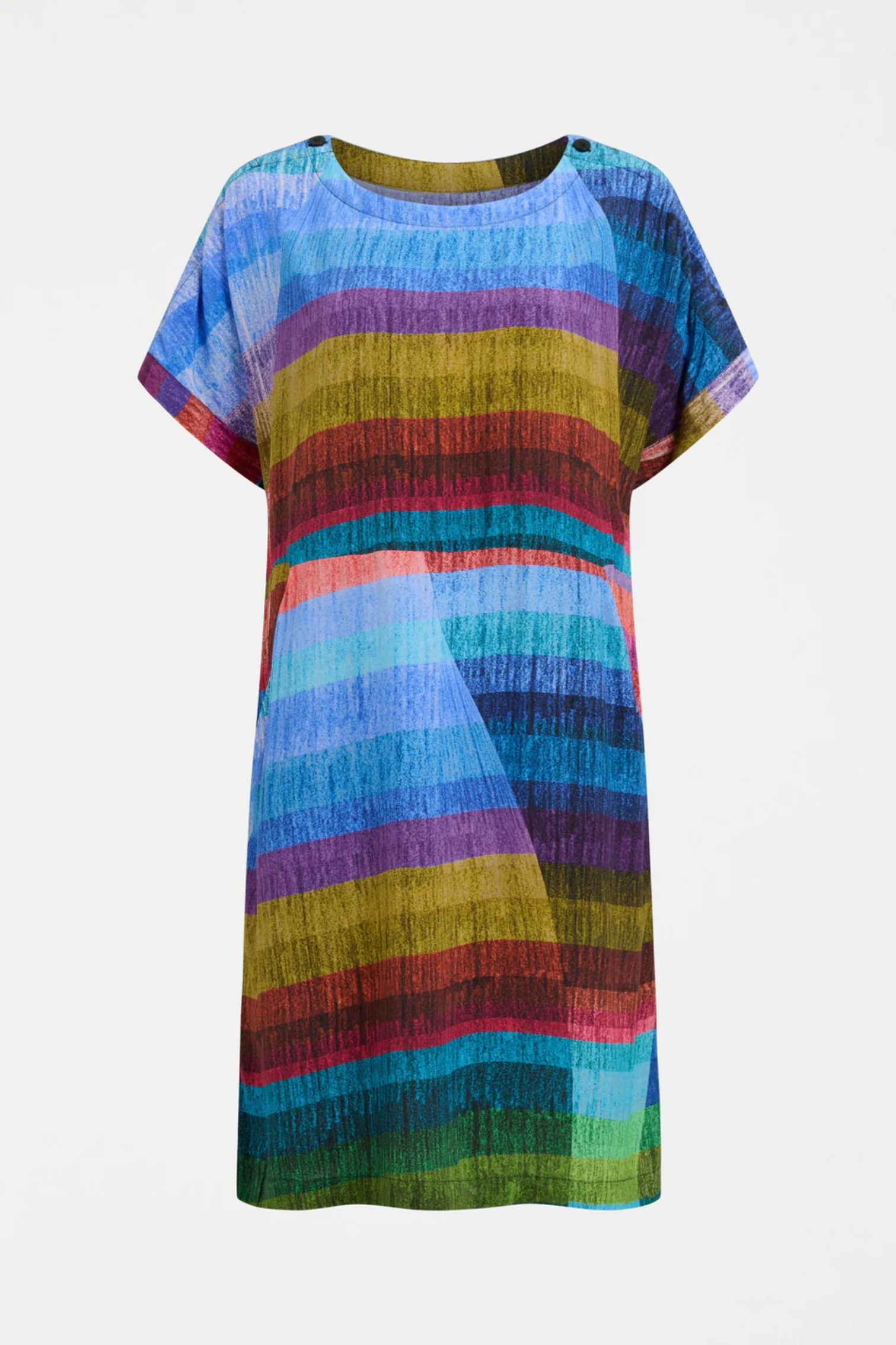 The Sono Dress is a classic, short shift style tee dress in the vibrant multi coloured Komi Print. This easy-to-wear, slip-on, regular fit, day dress features two angled front pockets and round neck with functional button detail on the sides. Crafted from a super soft, lightweight ECOVERO™, an ELK environmentally preferred fibre. Finished with short batwing sleeves, this playful dress will be an easy, to-go addition to your weekend and warm weather wardrobe. Pair with our Jyrti Platform sandal or our Ostt Sandal