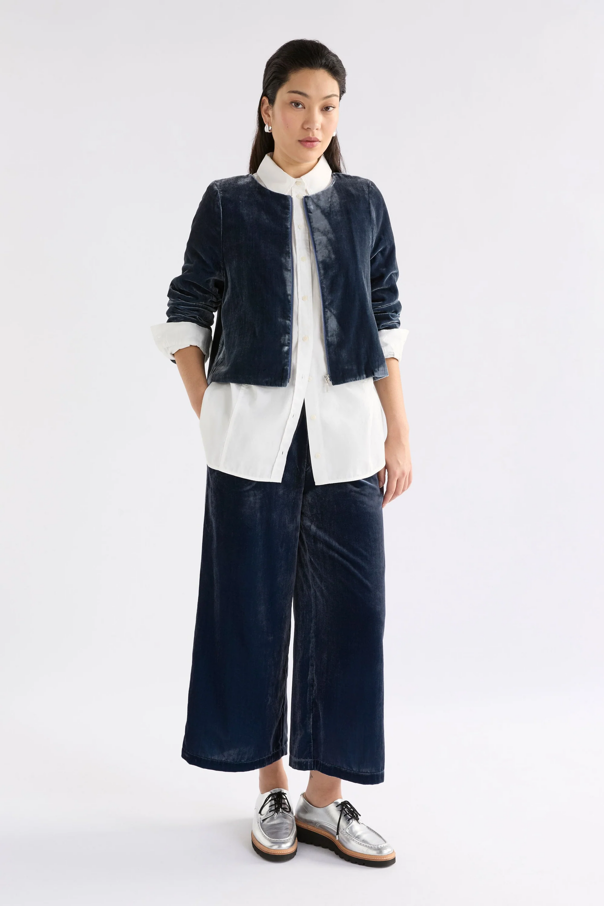 Cut from plush velvet, this jacket adds a rich, tactile feel to your layering line-up. Fully lined for a smooth fit, it features a round neck, set-in long sleeves, and a sleek front zip for a streamlined finish. Lightweight and versatile, it’s perfect for layering as the seasons shift. Pair with the matching Suuri Velvet Pants for an elevated set, or throw it over denim for a more relaxed outfit. Choose from smoky Steel Blue or rich Spice.