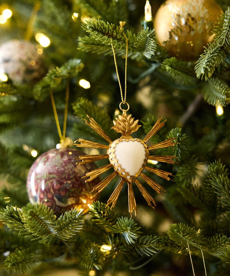 Style Description:The Hanging Burst Heart with Stone is a delicate yet striking hanging tree decoration, finished in aged gold with a charming white heart centre. This versatile piece effortlessly complements any Christmas theme, adding a touch of elegance to your tree.