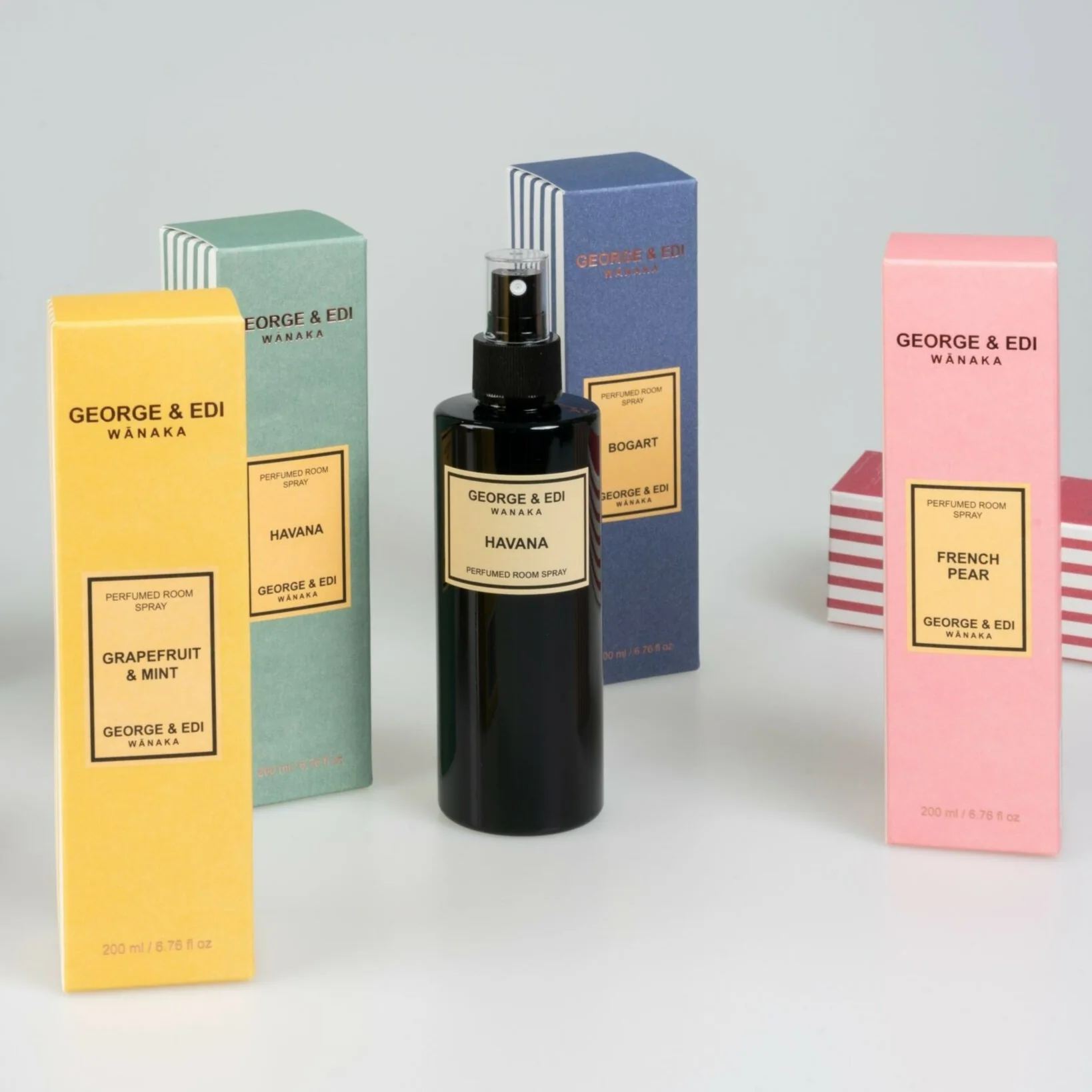 EACH GEORGE & EDI HOME PERFUME ROOM SPRAY IS HAND POURED IN OUR ATELIER. THE HOME PERFUME ROOM SPRAY IS A GREAT WAY TO QUICKLY ‘BOOST’ THE FRAGRANCE IN YOUR HOME AND THEY COMPLEMENT OUR CANDLES AND REED DIFFUSERS
