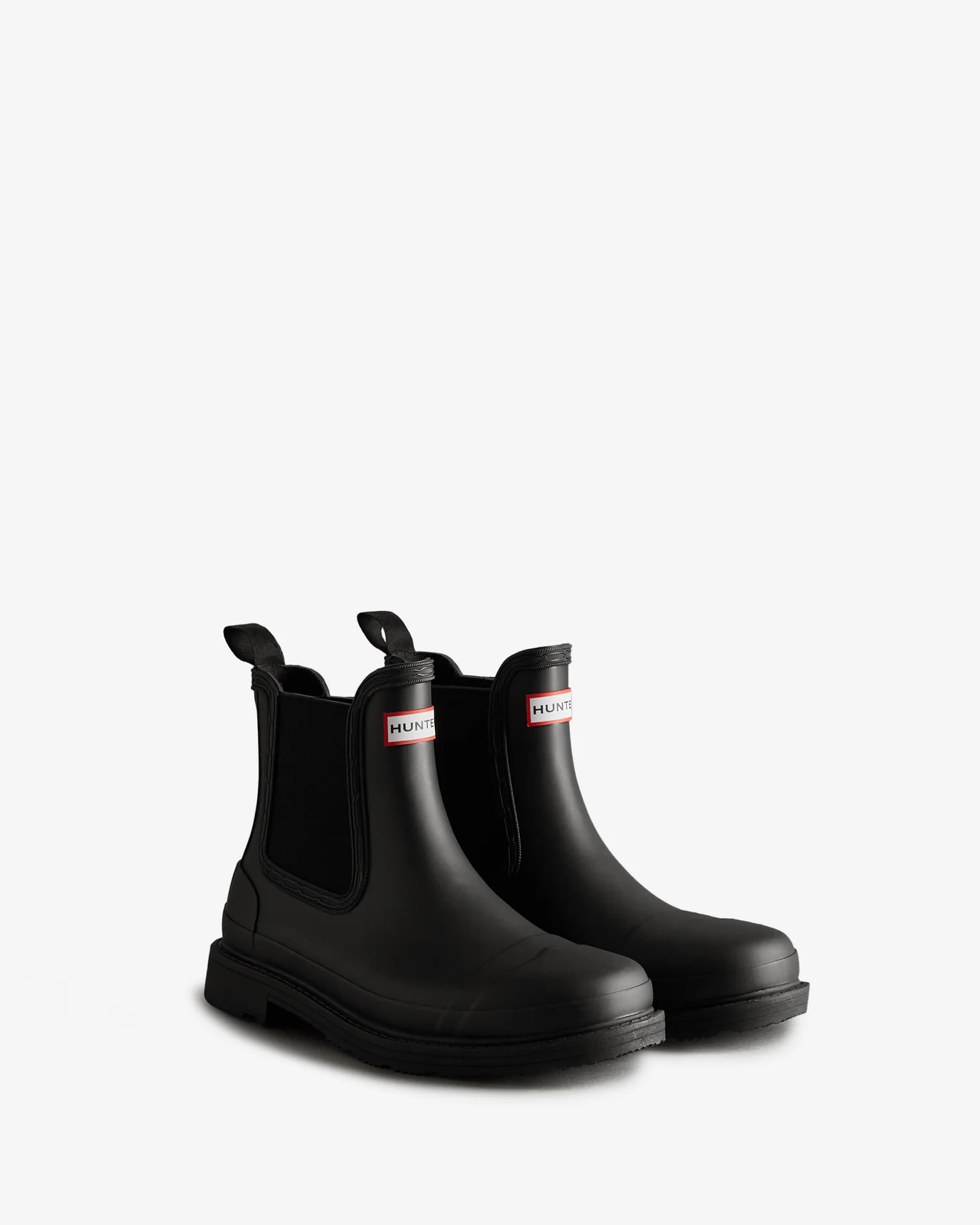 The FSC®-certified Commando Chelsea Boot was crafted using natural rubber from forests independently audited to Forest Stewardship Council® standards. These 100% waterproof lower boots are handcrafted to strict standards to protect forests, as well as the animals and communities that depend on them. Crafted from natural FSC®-certified, vegan rubber, the 100% waterproof lower Commando Chelsea is an icon within our Original collection. Retaining all the beloved features of the Original Chelsea Boot, like the flexible gusset and Hunter grip, this new silhouette has a higher profile, reaching 15mm further up the leg. This women's black Chelsea boot style also features an updated recycled polyester lining and insole.