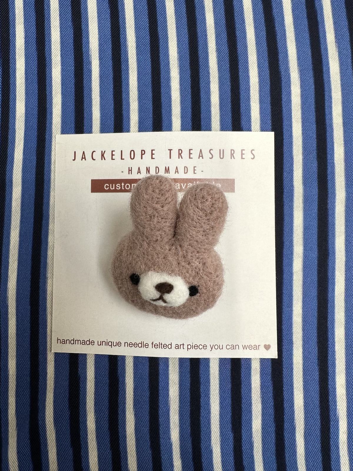 Jackelope Treasures hand-made brooches and keychains are entirely made out of pure New Zealand wool using needle felting technique.
