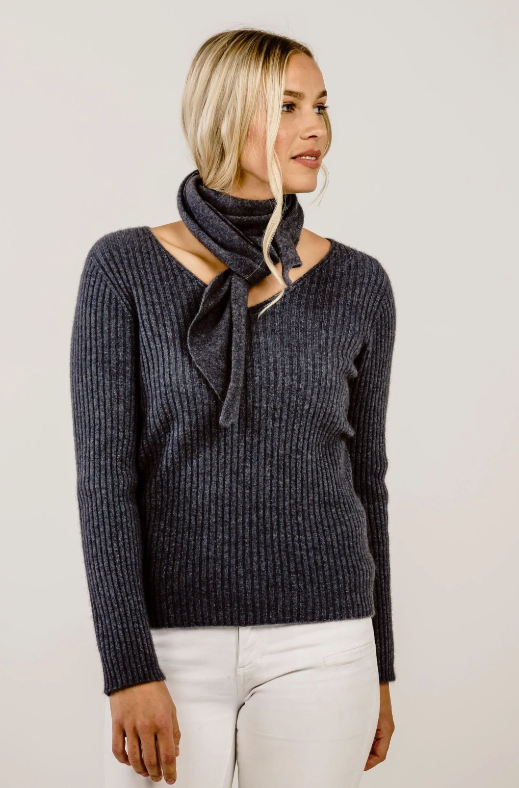 Our Merino Possum Scarf Tie - petite and chic, just enough to tie together an outfit.