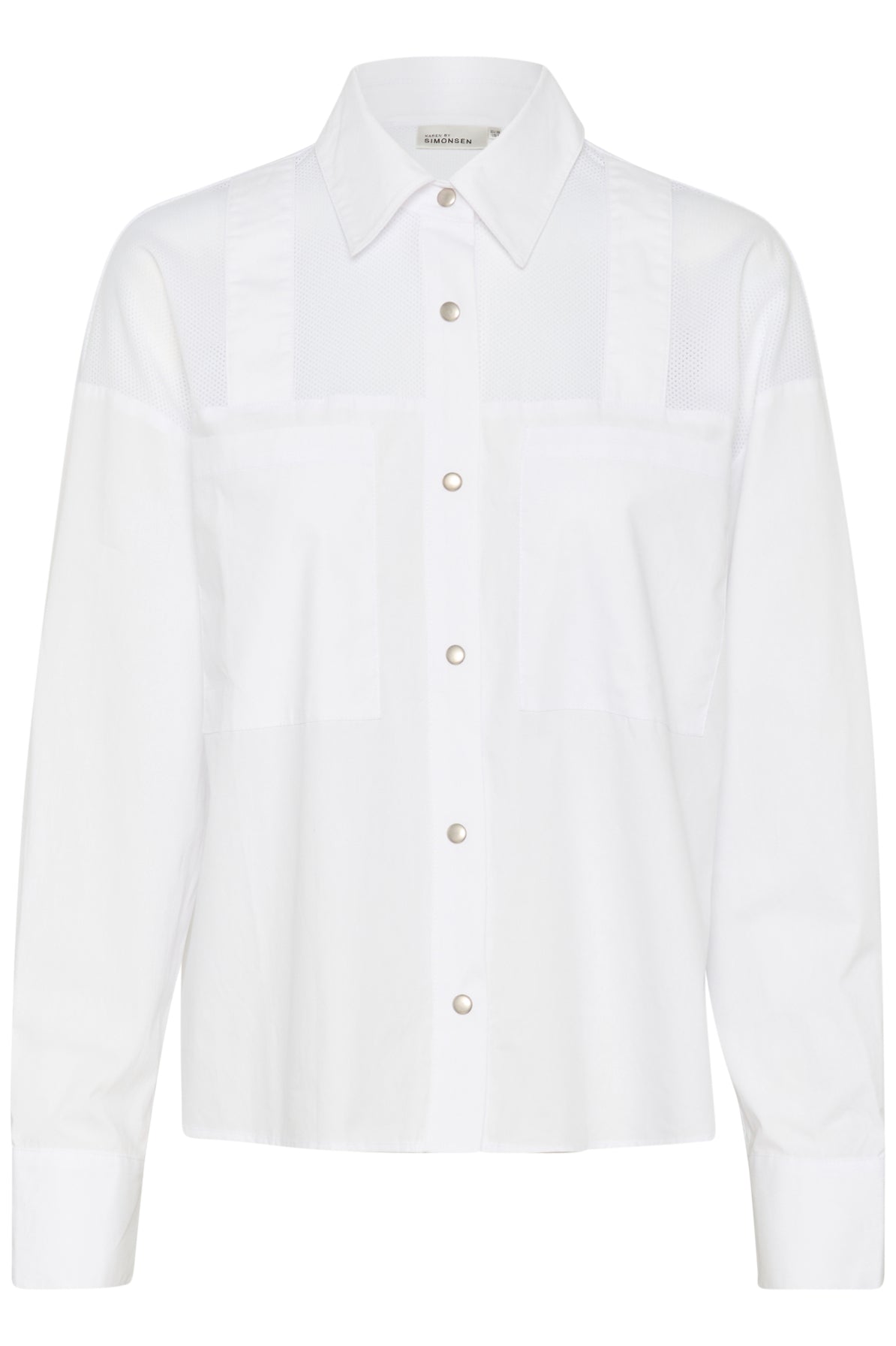 The Umali Shirt by Karen by Simonsen is crafted from 100% cotton in a clean bright white, featuring a modern dome front button, chest pocket, and subtle mesh detailing for a fresh twist on a classic staple. Lightweight and breathable—perfect for elevated everyday wear.