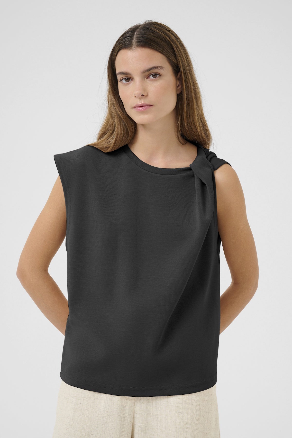This top features a round neckline and an elegant shoulder detail. Designed in a soft material for a sleek look. Easy to style with your other wardrobe classics.