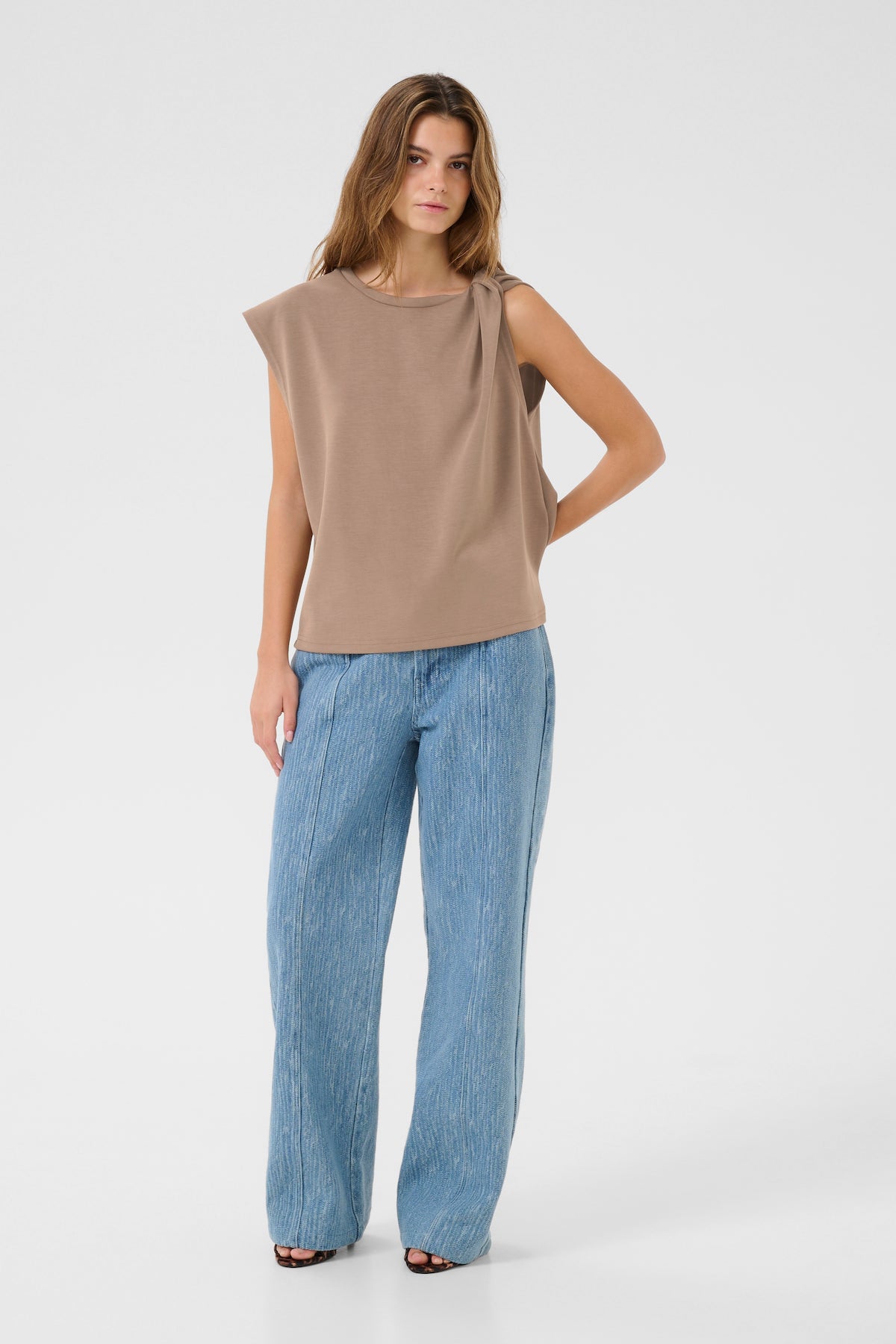 This top features a round neckline and an elegant shoulder detail. Designed in a soft material for a sleek look. Easy to style with your other wardrobe classics.