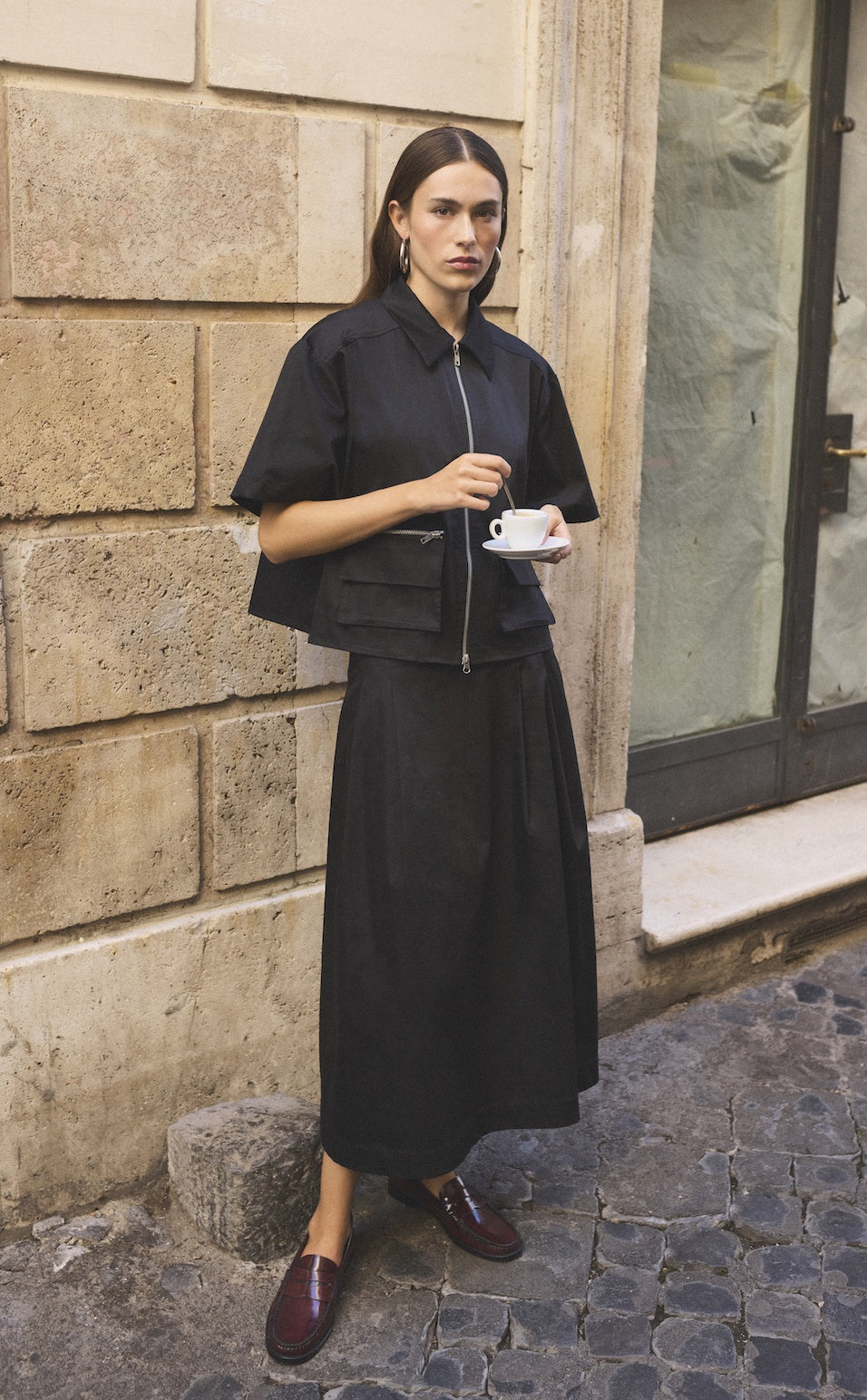 Midi skirt with a light structure and subtle pleats for an elegant drape. A versatile design that can be styled with a shirt for everyday wear or a top for special occasions.
