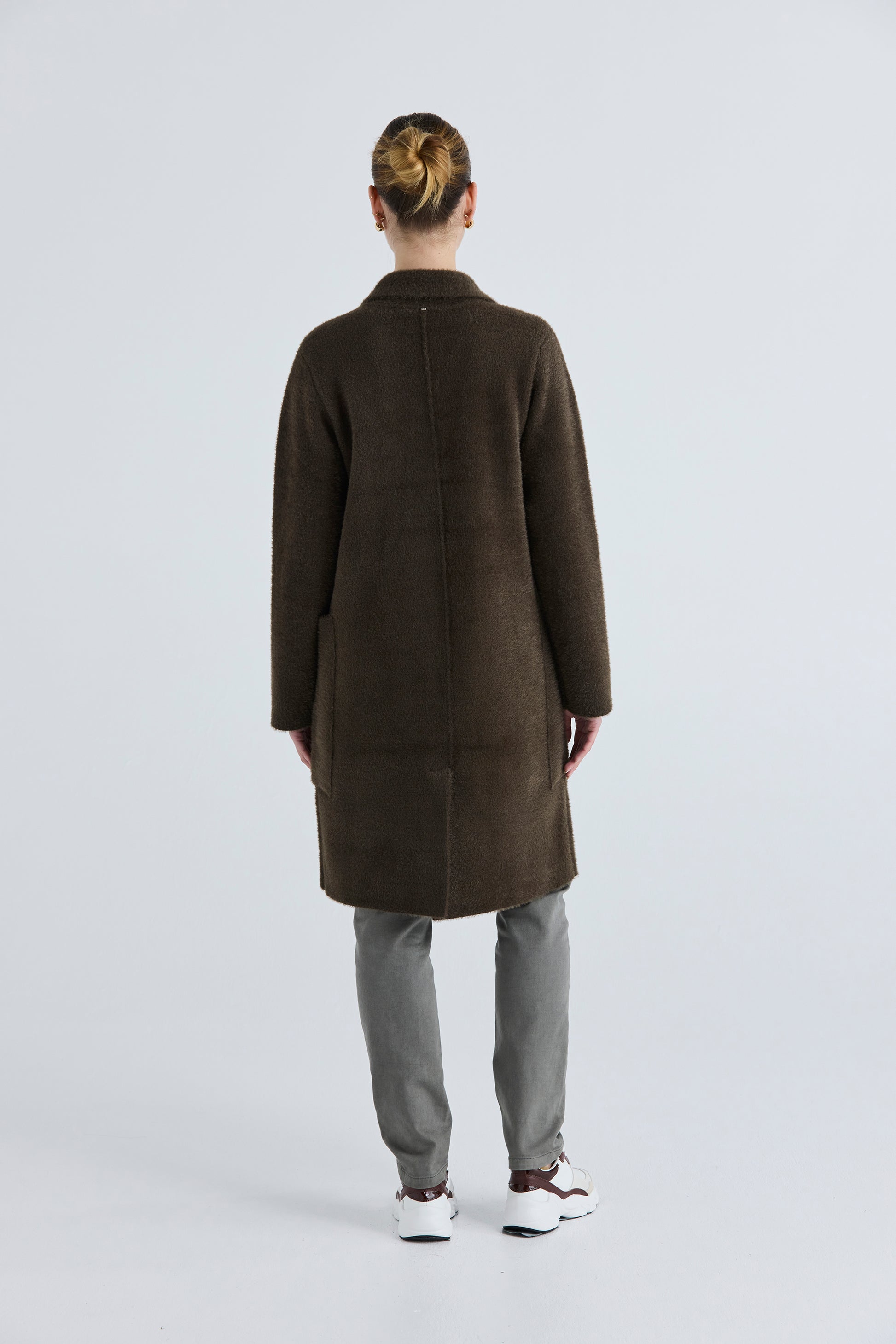 The River Coat epitomises cosy sophistication, crafted from a soft knit with double-breasted styling and horn-imitation black buttons. Its longline length makes it an essential winter staple, perfect for layering over your favourite jeans.