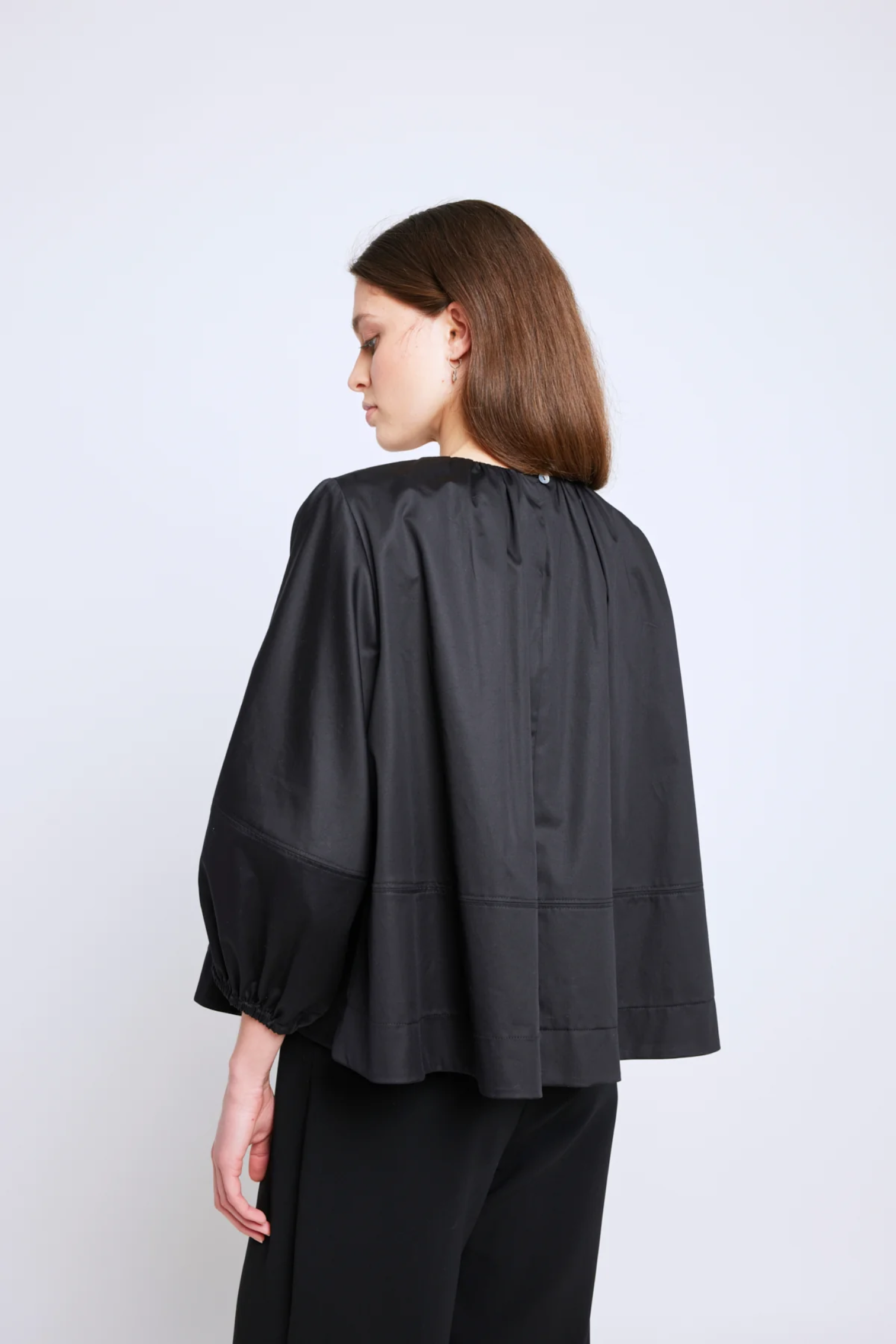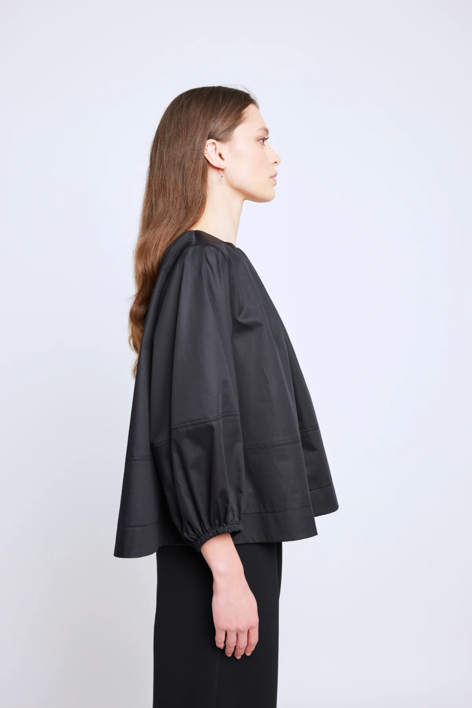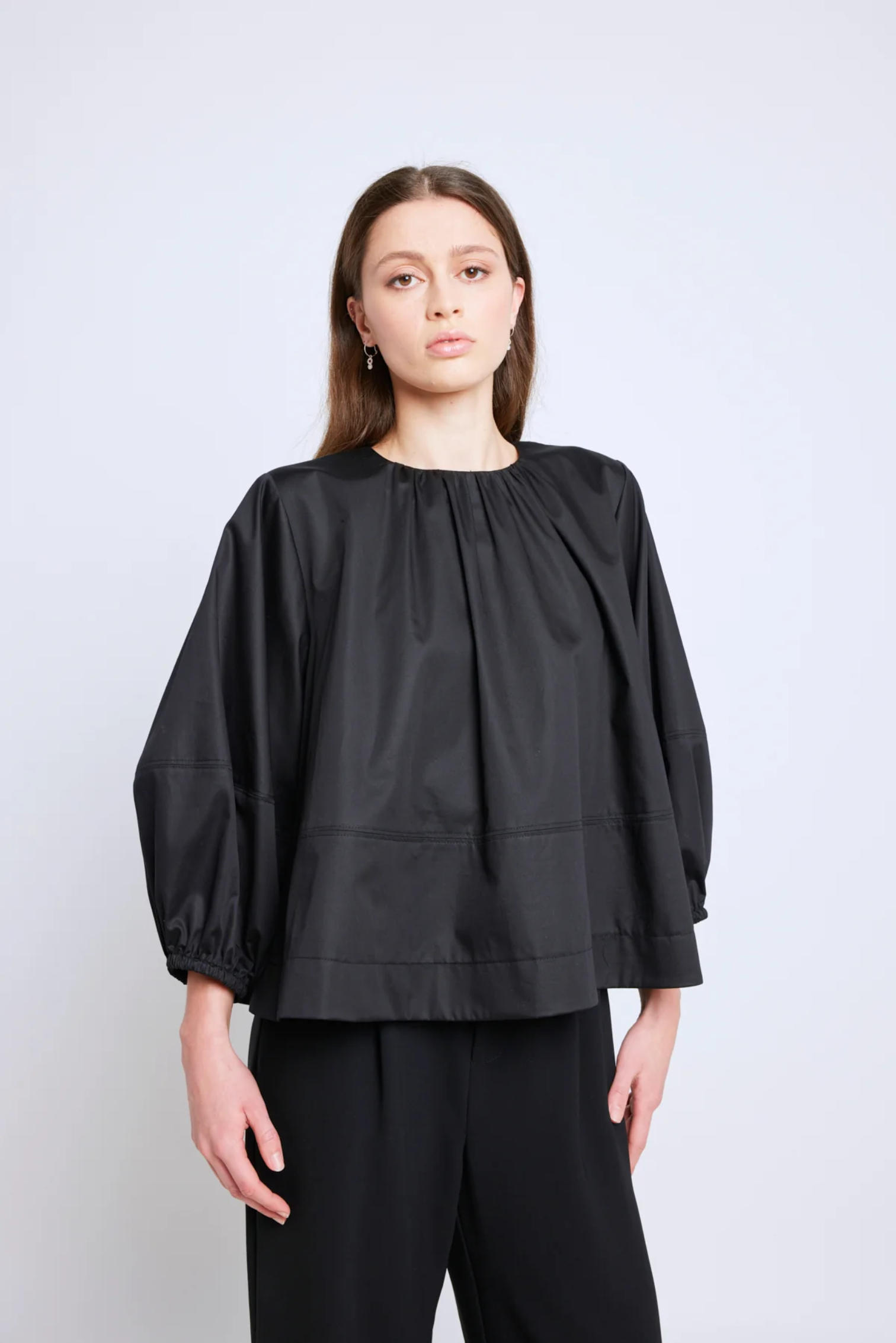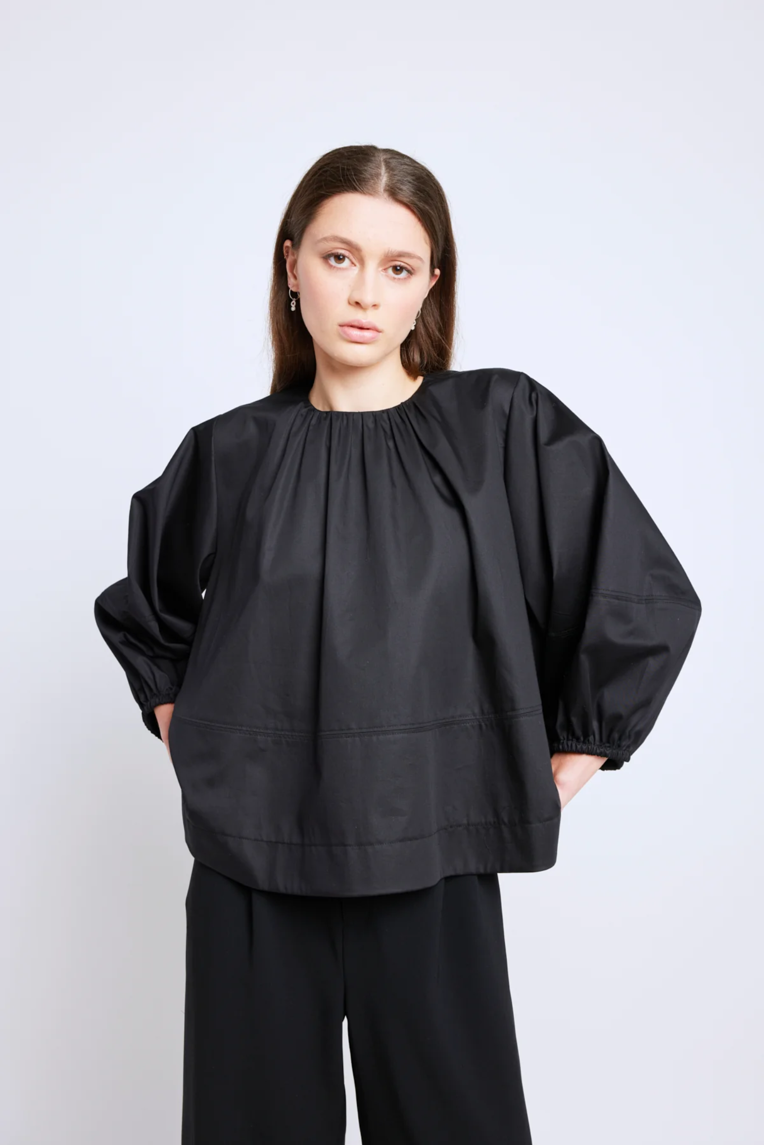 Crafted in a sumptuous organic Turkish origin cotton sateen, the Lay up top features a gathered neck, long lantern sleeves and elasticated cuffs.