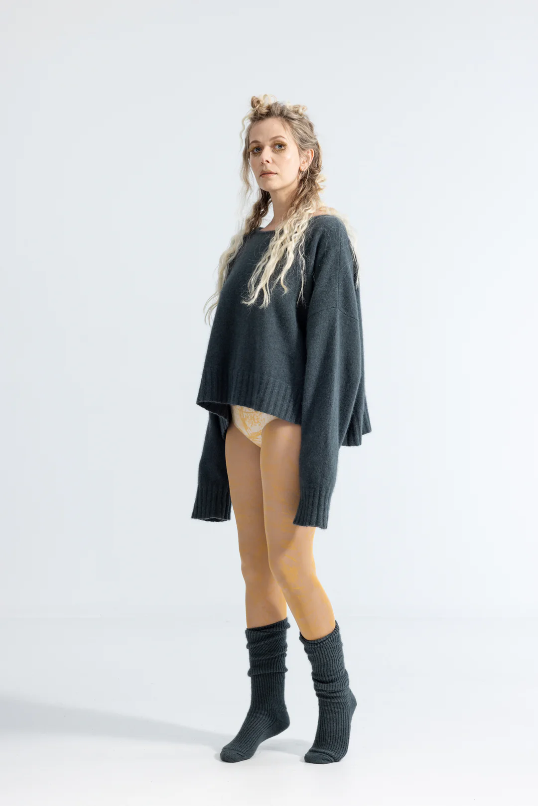 Available in Ash, Midnight, and Black, The U Crop is crafted from a luxurious blend of 37% Possum, 10% Silk, 53% Merino, offering the perfect balance of comfort and insulation.