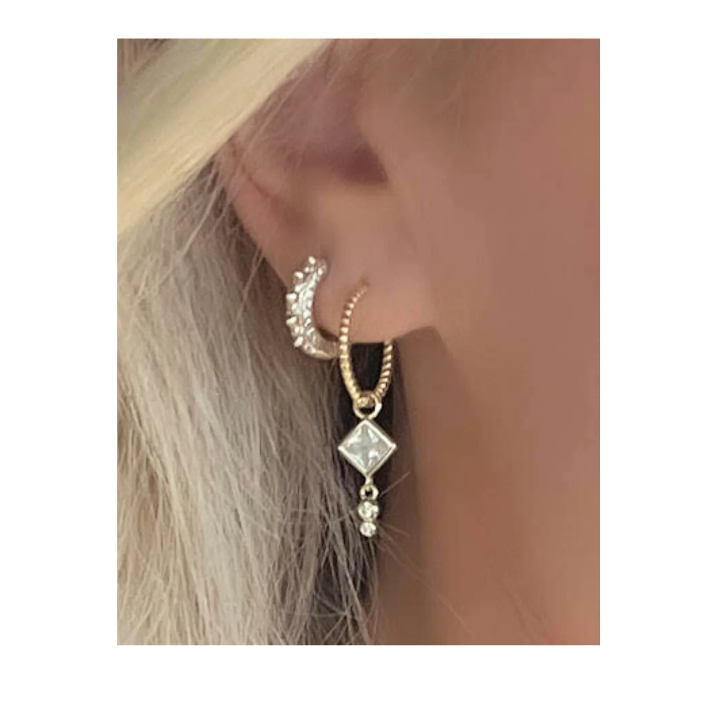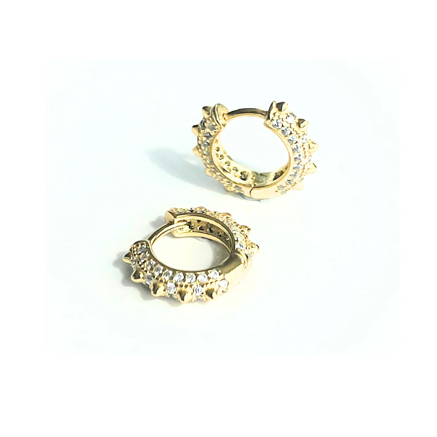 The stunnning Sterling Silver, 14k gold Ocean Huggies are reticent of delicate sea urchines. Their spiky, textured surface encrusted with zirconias provide just the right amount of sparkle, and look amazing as part of a stack too!