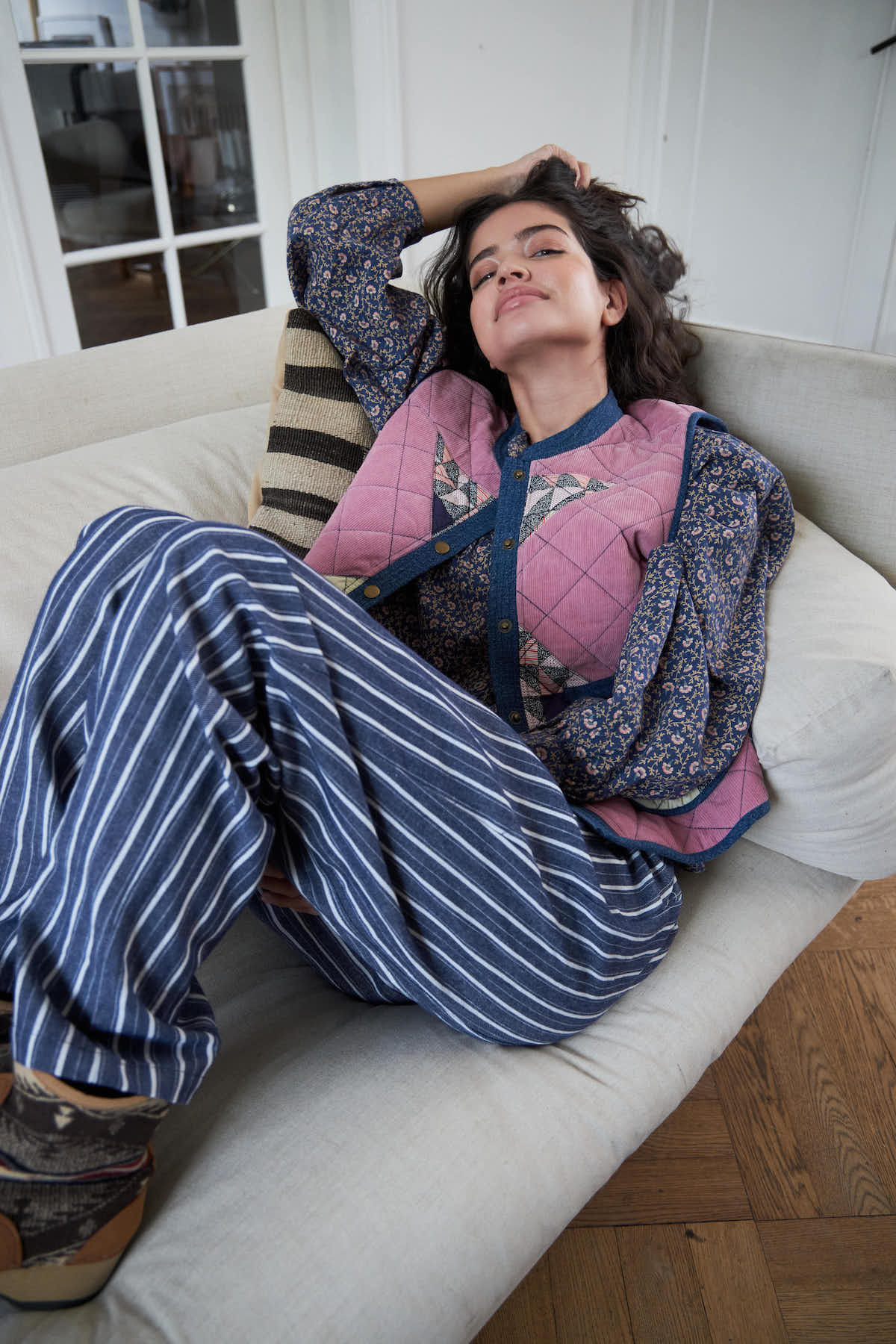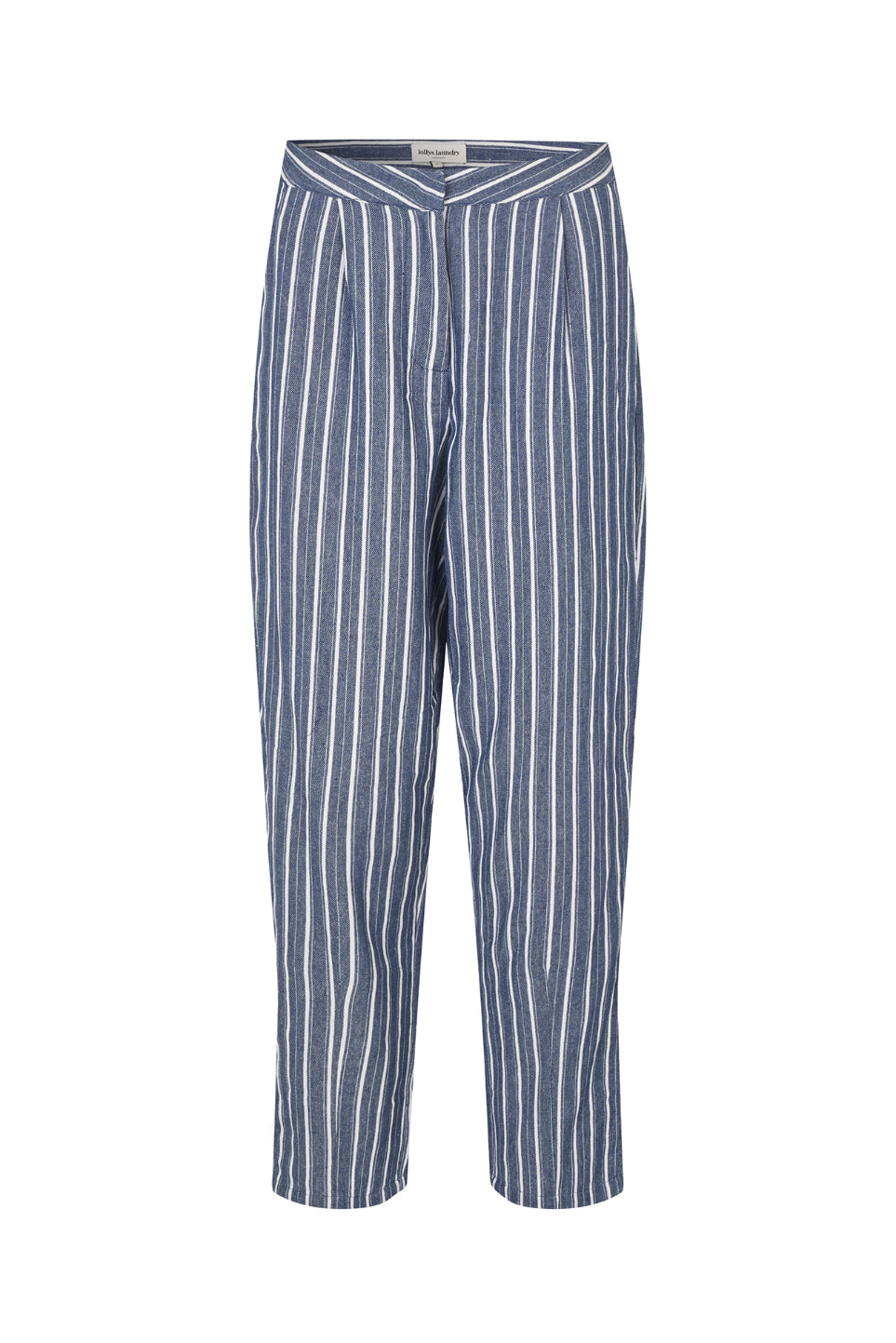 The Maisie pants are a comfortable addition to your wardrobe. Here the trousers come in classic blue and white stripes, which give a timeless and stylish look. They have a relaxed and comfortable fit, the material is soft and falls beautifully, they have side pockets and they are full length. They can be easily styled both up and down, which makes them perfect for both everyday use and more formal occasions. The Maisie trousers combine fashion and functionality, and it is not without reason that these trousers are a favorite among the staff.