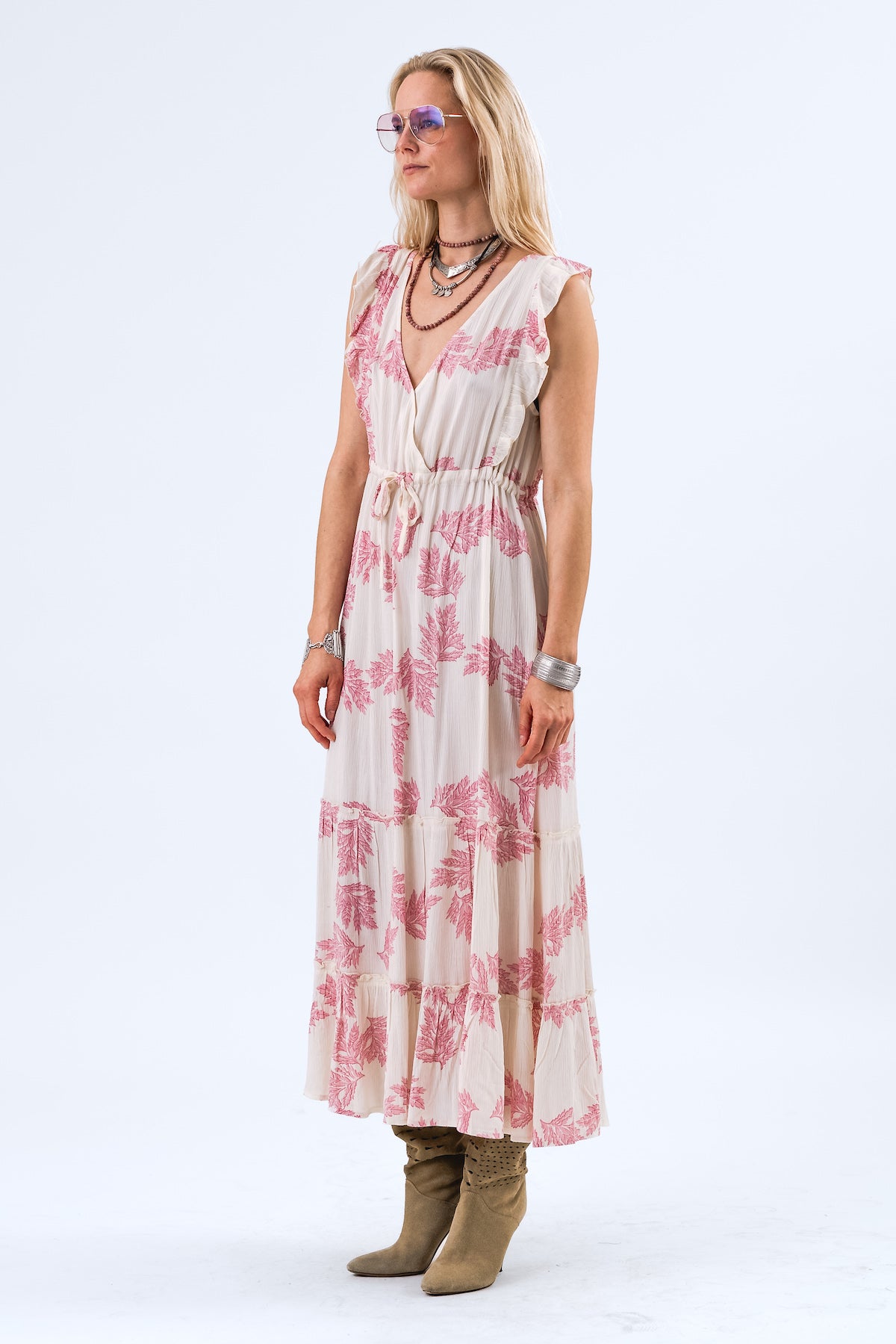 The SamoLL Midi Dress is an absolute must-have and a favorite in the collection. With its creamy background and elegant leaf print, it creates a striking and stylish expression.