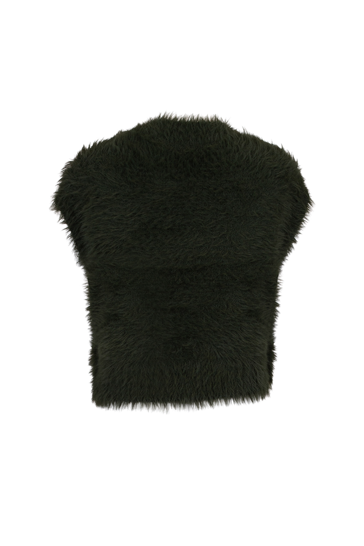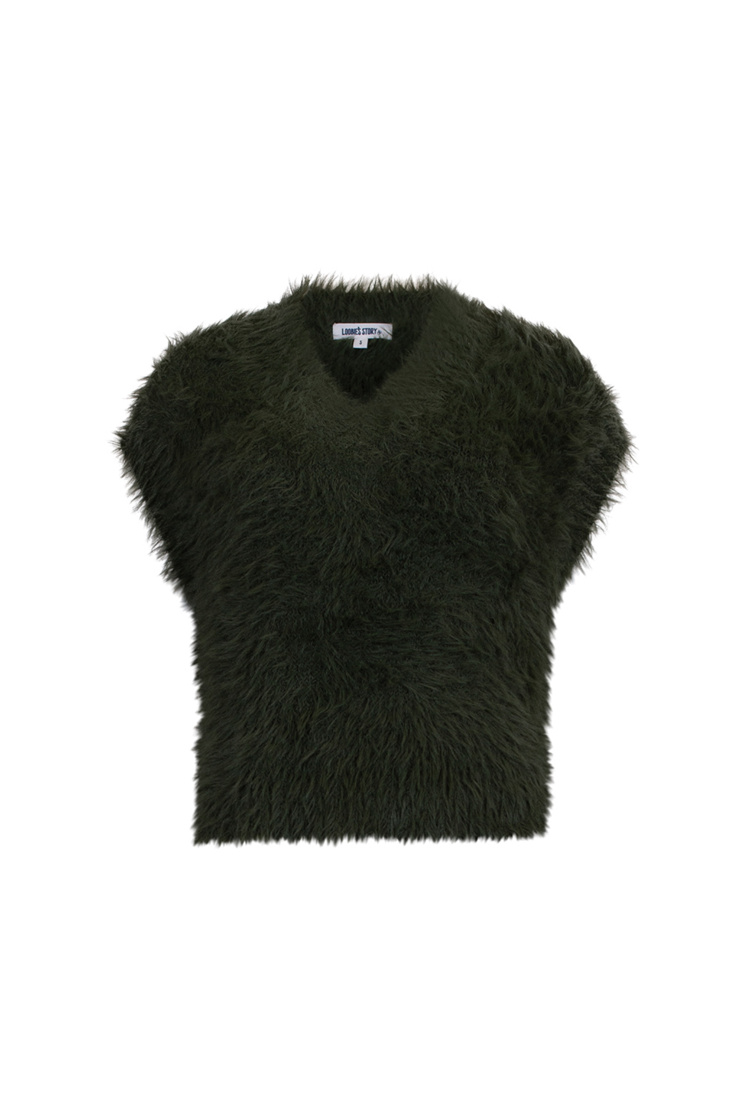 Loose fit V-neck vest with a dropped shoulder, knitted in a soft, fluffy yarn.