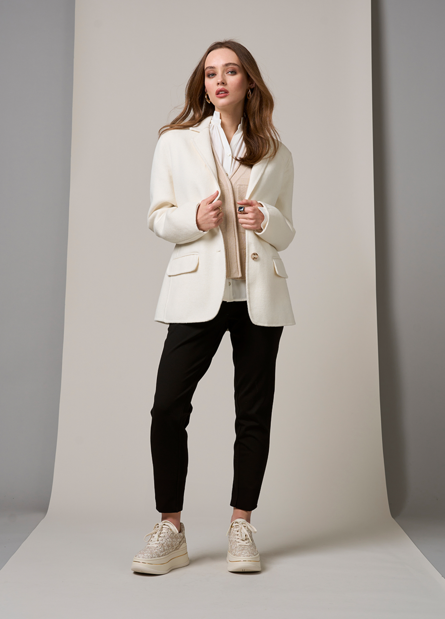 Slim fit ponte pant with a forward side seam and side panels for a flattering fit, with a front split at hem.