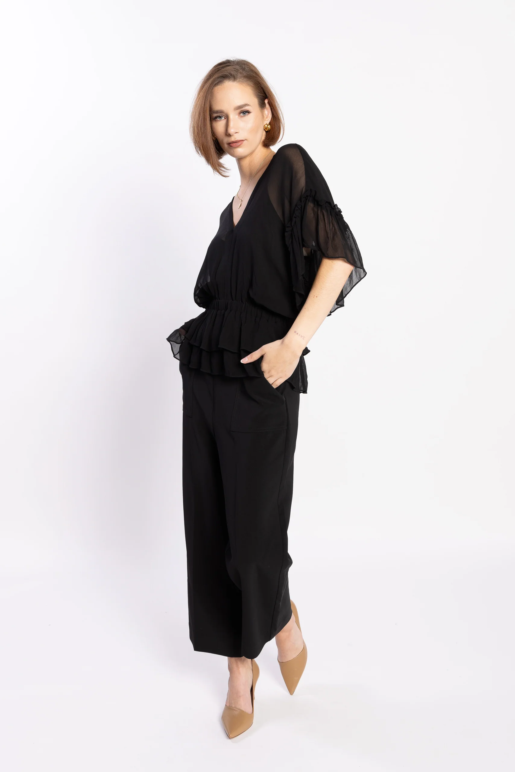 This meticulously crafted blouse boasts intricate detailing that is sure to captivate. Its elegant V-neck design is complemented by an elastic waistband featuring a double hem frill, adding a touch of sophistication. The drop shoulder sleeves with frill detail further enhance the blouse's charm. Notably, this blouse comes with an attached cami, ensuring both comfort and convenience. Elevate your wardrobe with the Brooke Blouse, a true embodiment of timeless elegance.