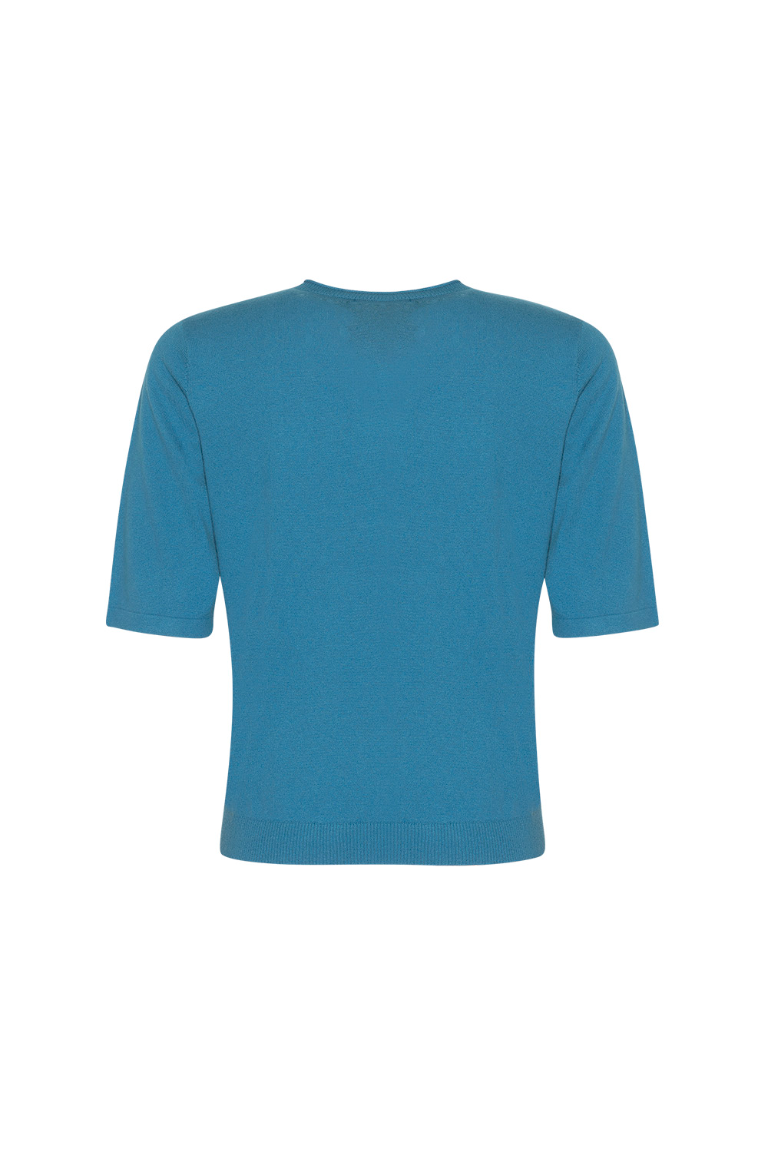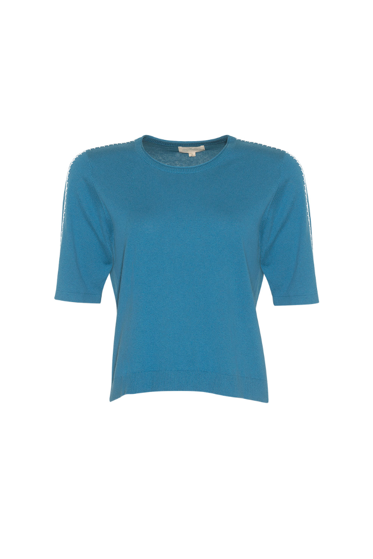 Crew neck tee in cotton-cashmere, featuring hand-embroidered detail over the shoulderline and sleeve.