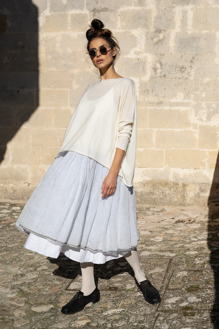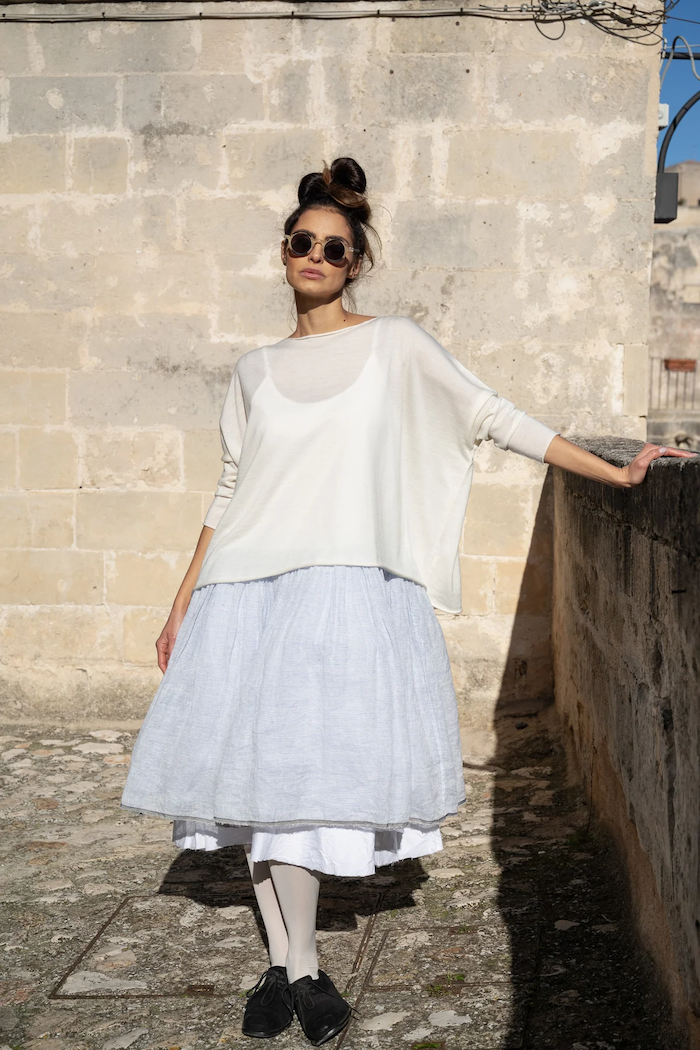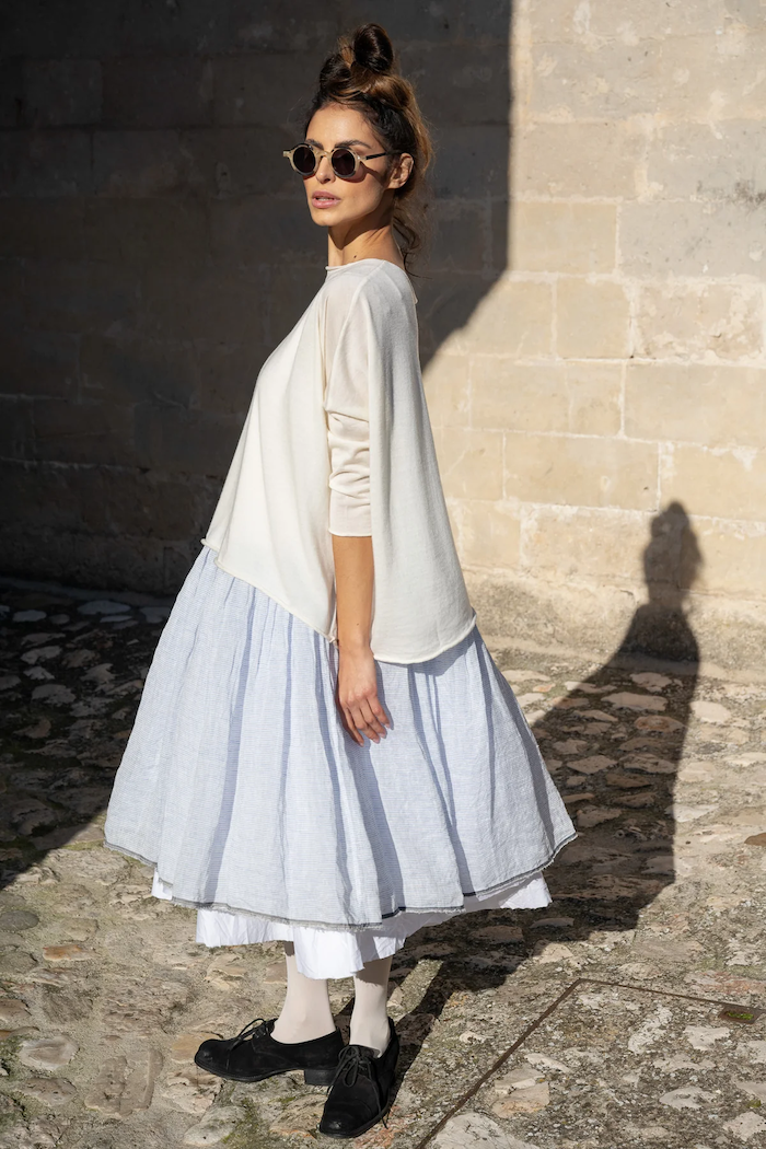 Amélie is a gorgeous three layered tutu slip made with paper cotton, cotton organdy and linen gauze raw hem skirt. Our tutu styles are made to work as a skirt would, made with a built in spaghetti strap cami for a seamless look under any of our tops.