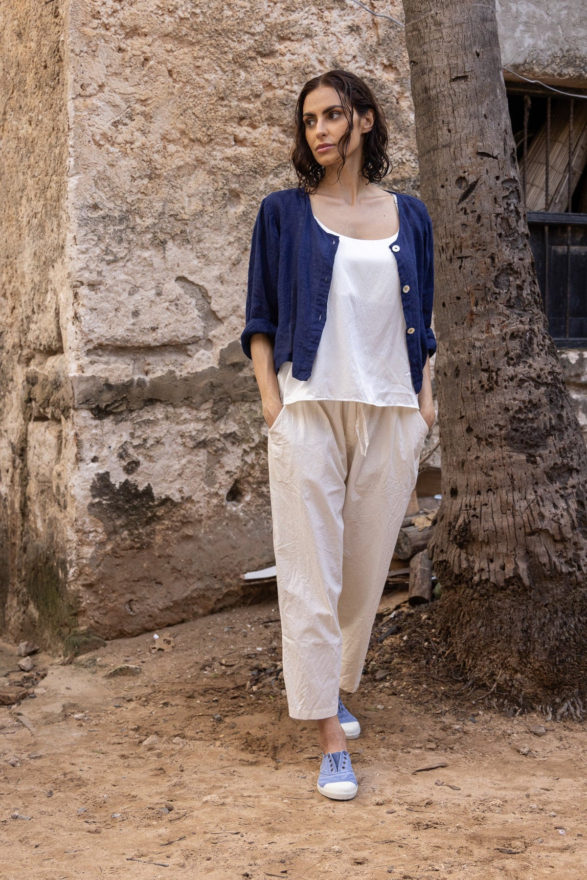 Our Doto Jacket is crafted from lightweight gauze linen and designed with a soft round neckline and our signature agoya shell buttons. Effortless to layer over any of our tops, it offers a breathable and beautifully light layer with just the right amount of arm coverage. A fresh pop of colour or texture to elevate everyday dressing.