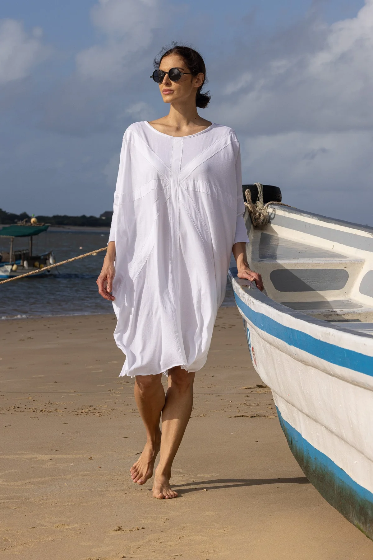 An old favourite, reimagined for the season. The Union Tunic is made from soft, breathable cotton and features the iconic Union Jack stitched into the front bodice. It has a wide neckline and relaxed batwing sleeves that create a balanced, flowing shape.