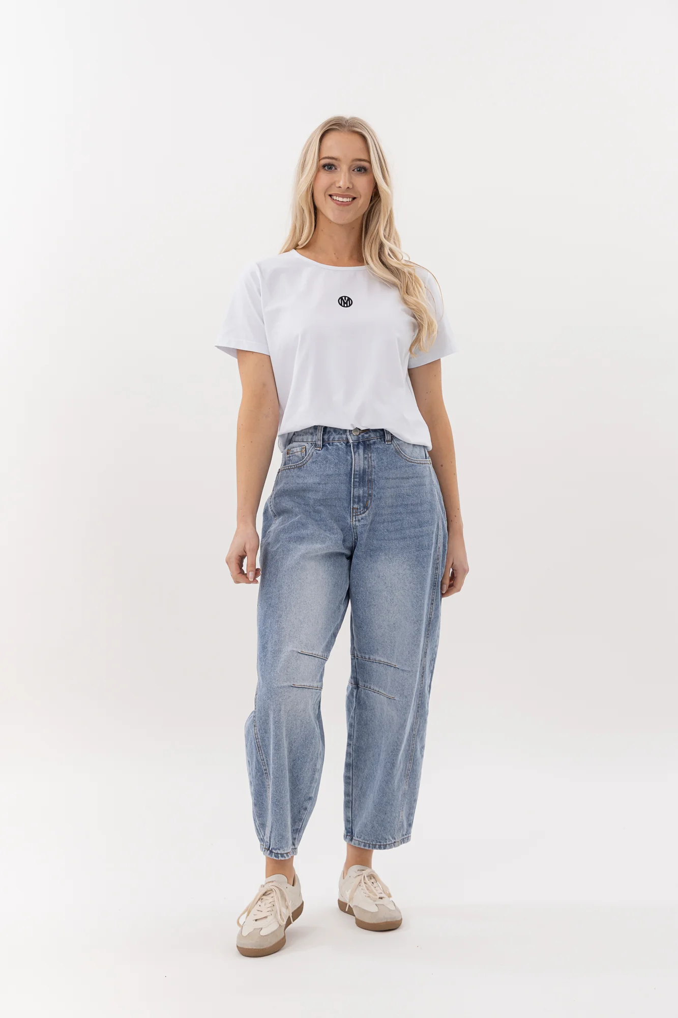 Introducing the Barrel Jean in our light wash blue the latest addition to MI MOSO's collection, which has already become a top pick of this season. This versatile denim features standard sizing, so you can simply choose your regular size. A must-have for any wardrobe.